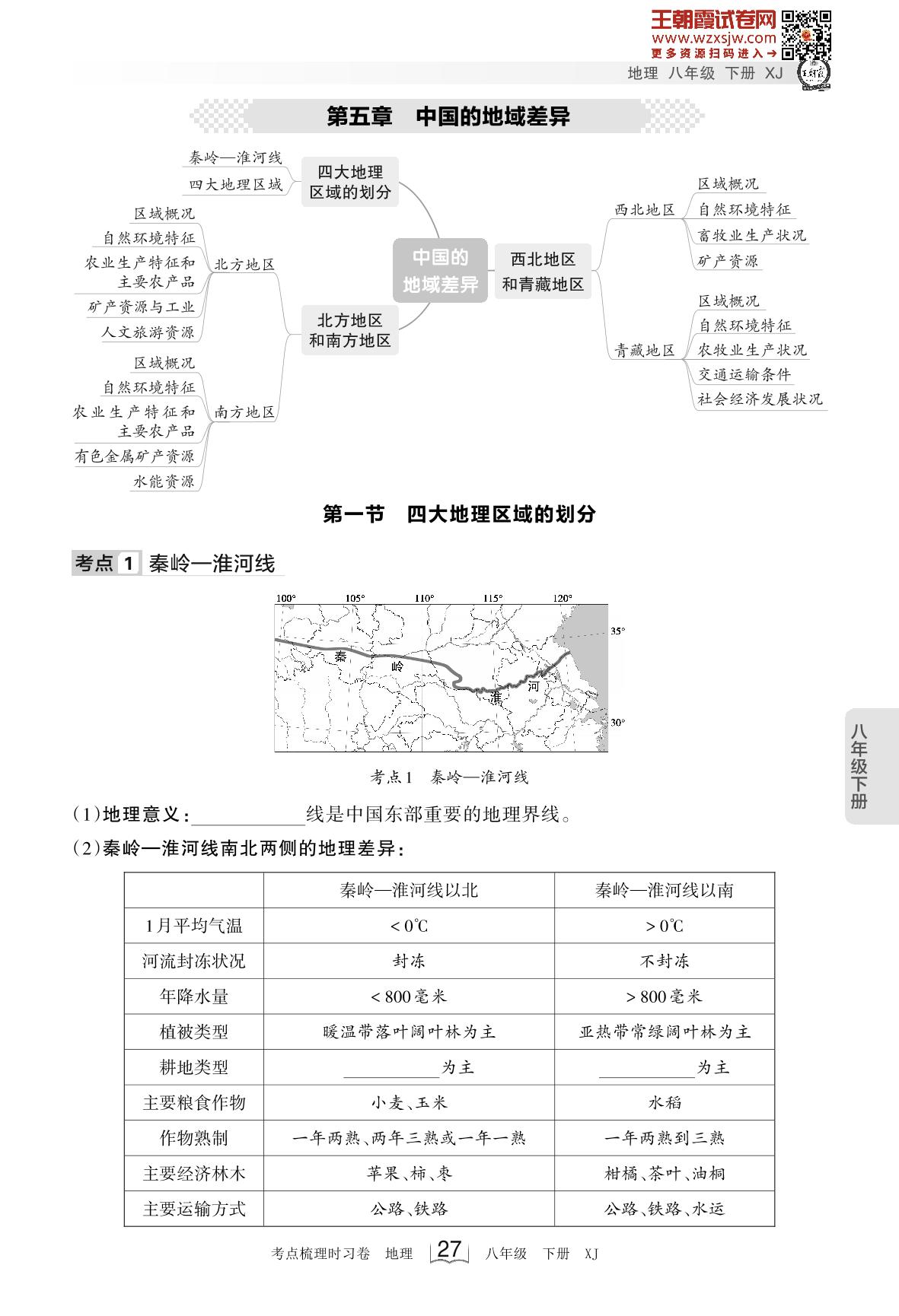 2024下册八年级地理湘教版 考点梳理手册——第五章 中国的地域差异