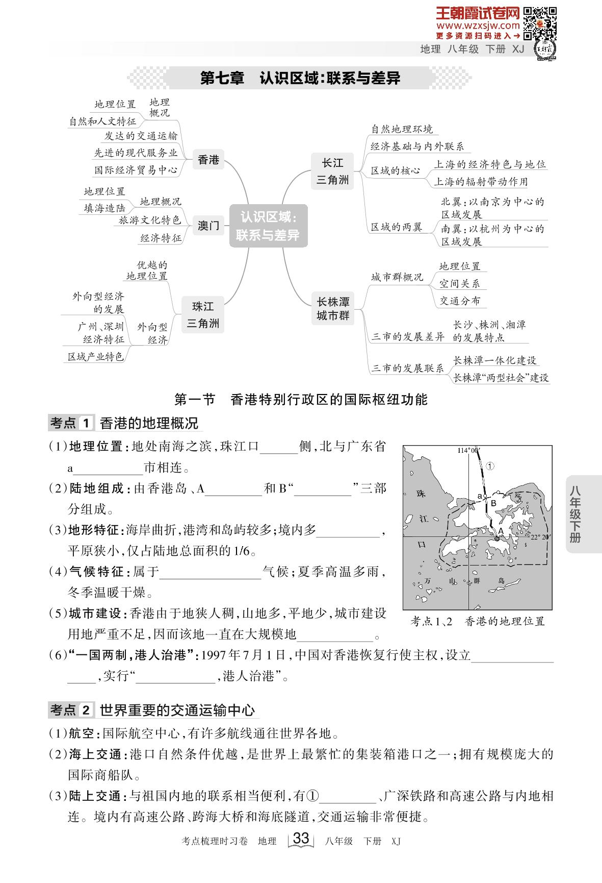 2024下册八年级地理湘教版 考点梳理手册——第七章 认识区域:联系与差异