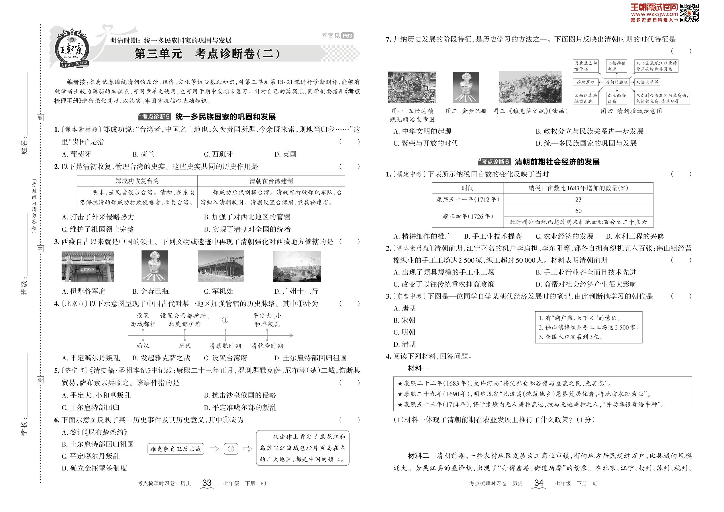 2023下册七年级历史人教版 第三单元 考点诊断卷(二)