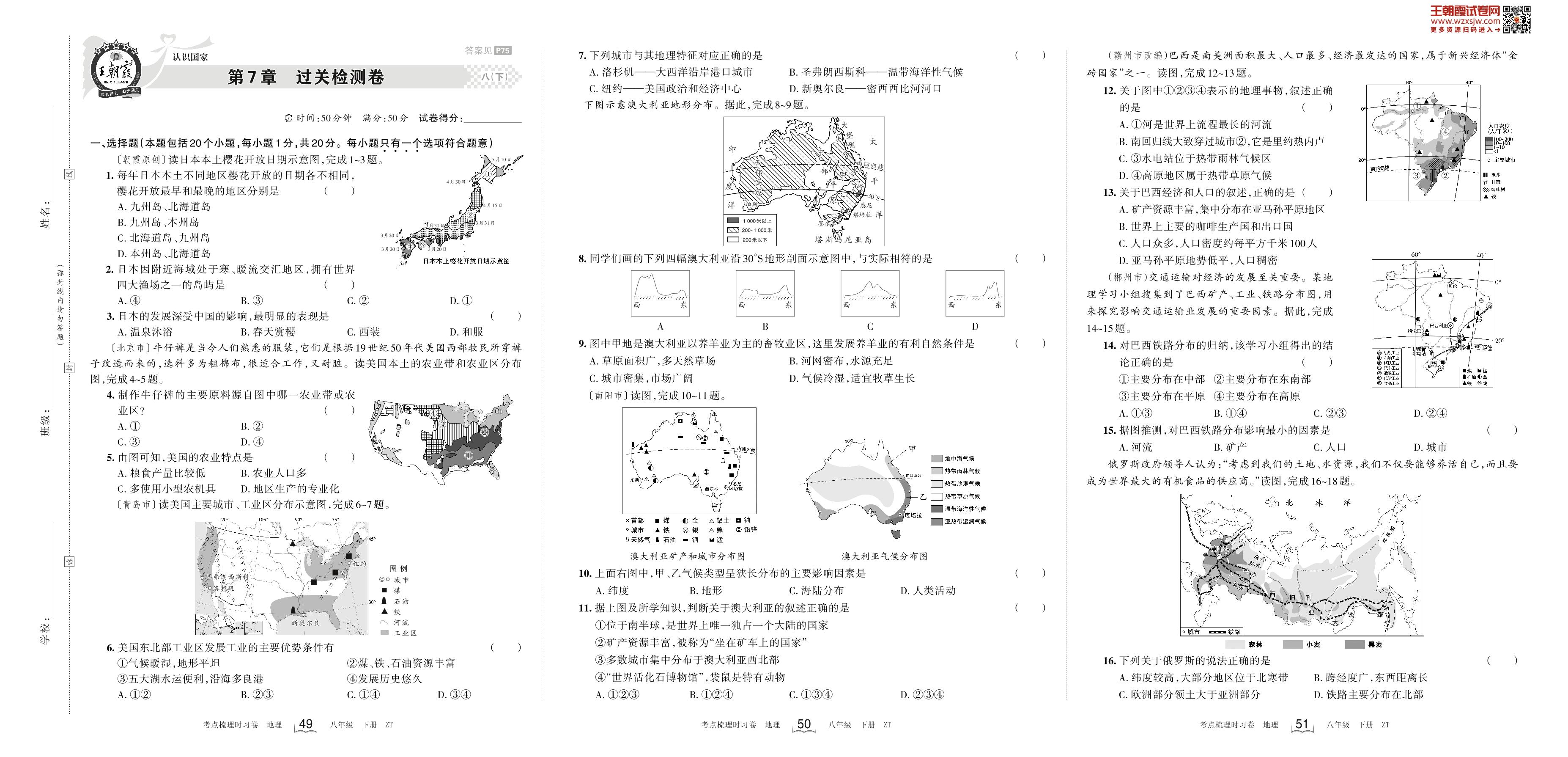 2024下册八年级地理中图版 第7章 过关检测卷