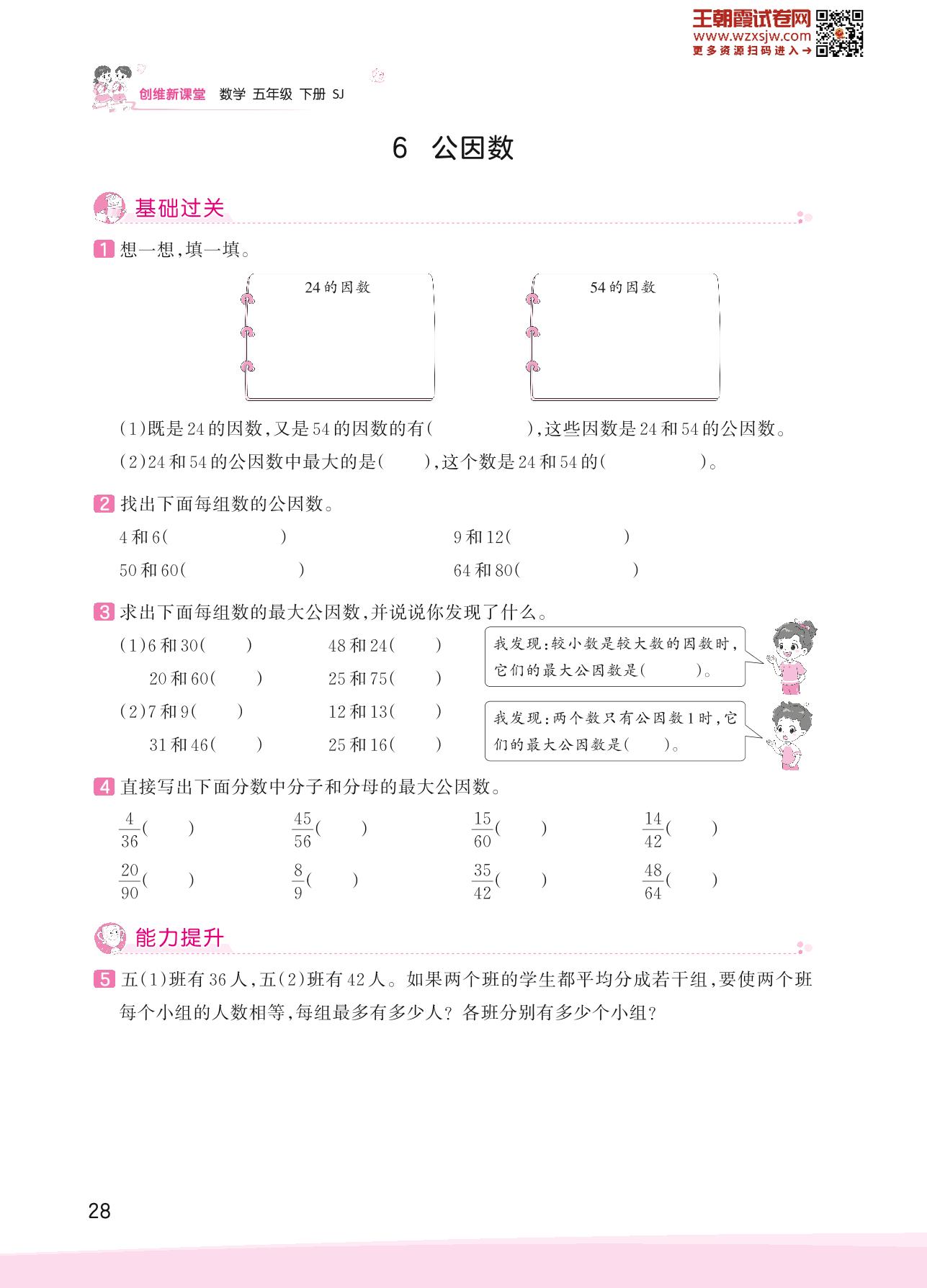 2023下册五年级数学苏教版 三 因数与倍数——6 公因数