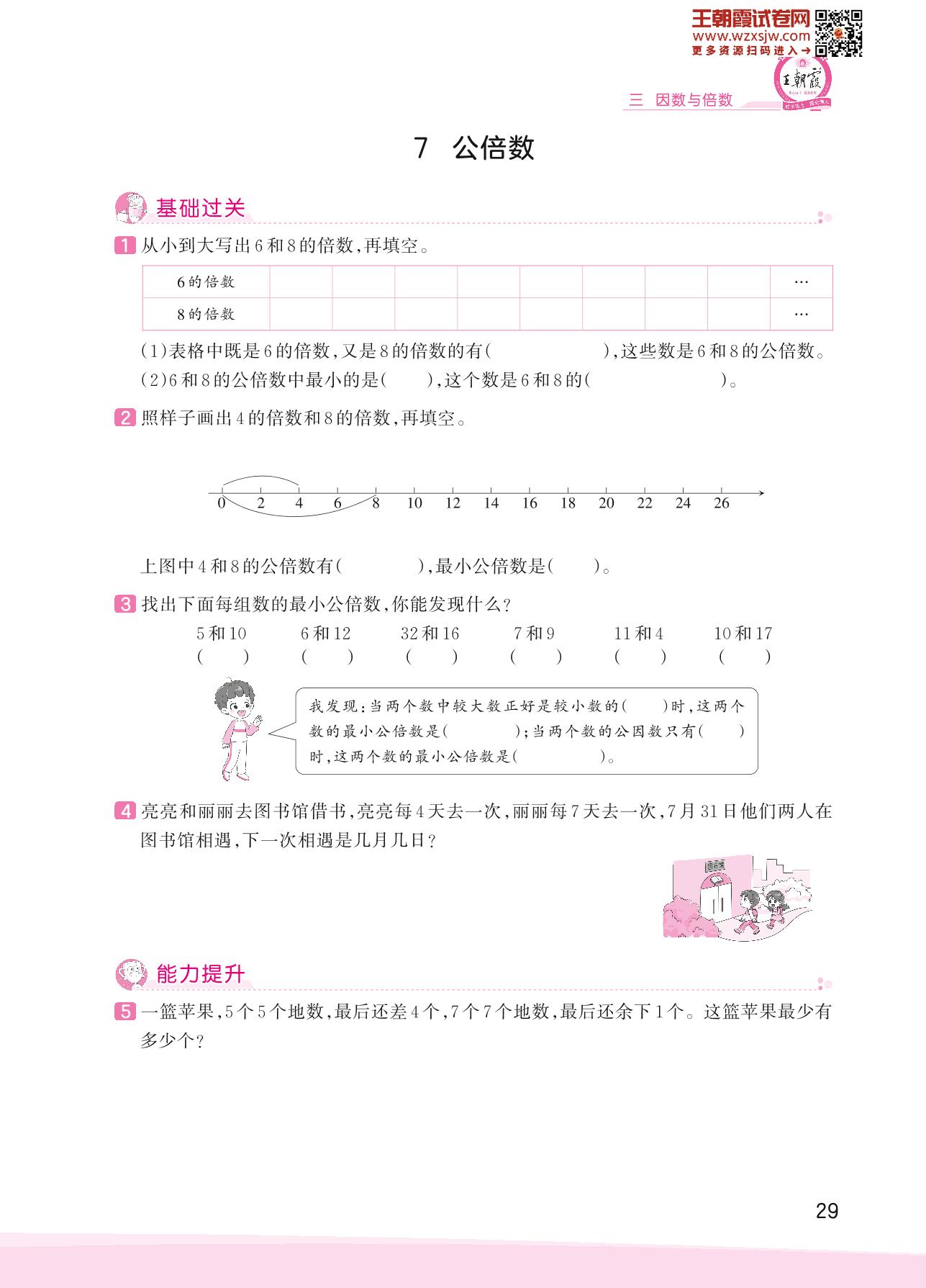 2023下册五年级数学苏教版 三 因数与倍数——7 公倍数