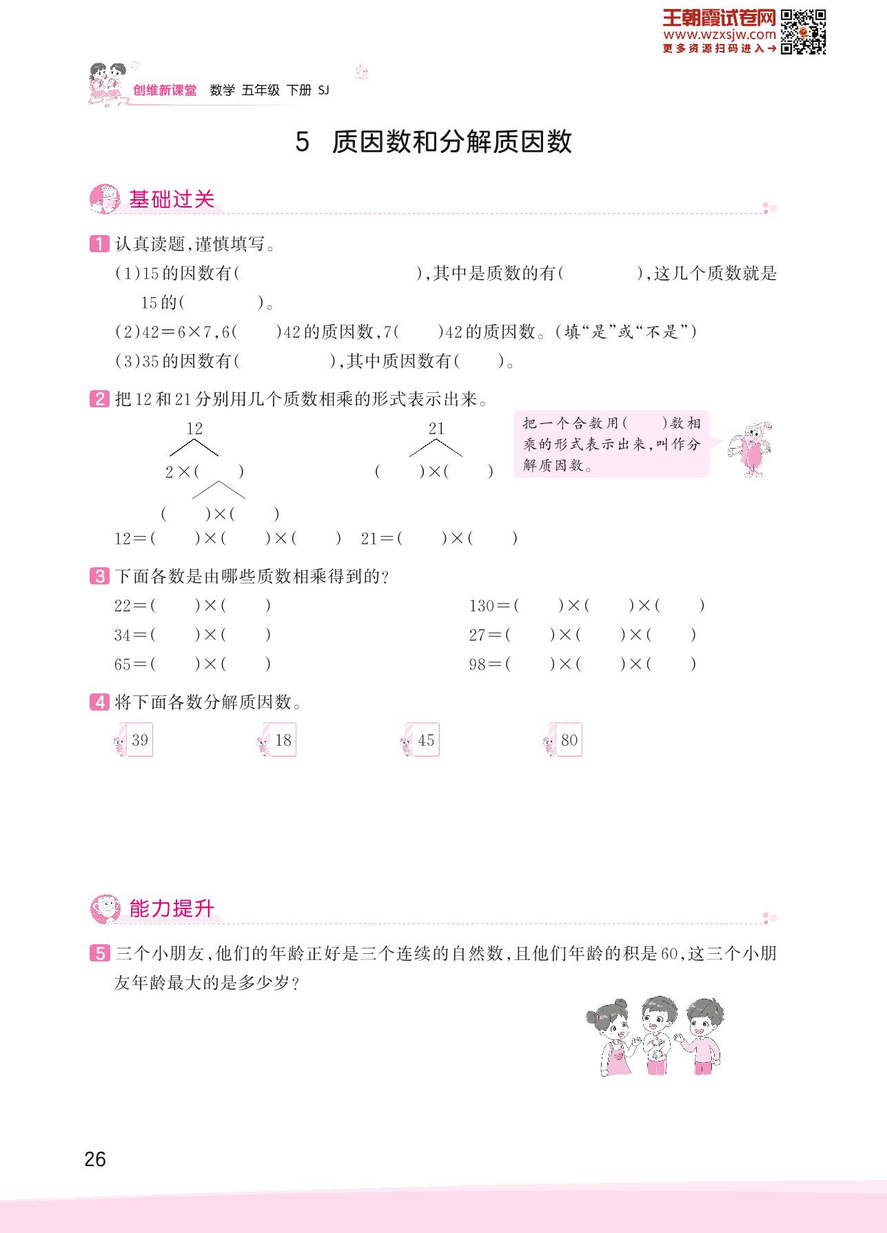 2023下册五年级数学苏教版 三 因数与倍数——5 质因数和分解质因数