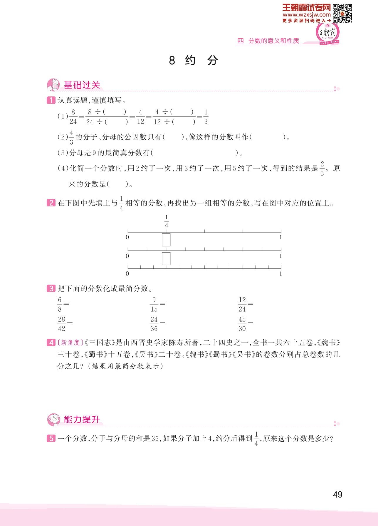 2023下册五年级数学苏教版 四 分数的意义和性质——8 约分