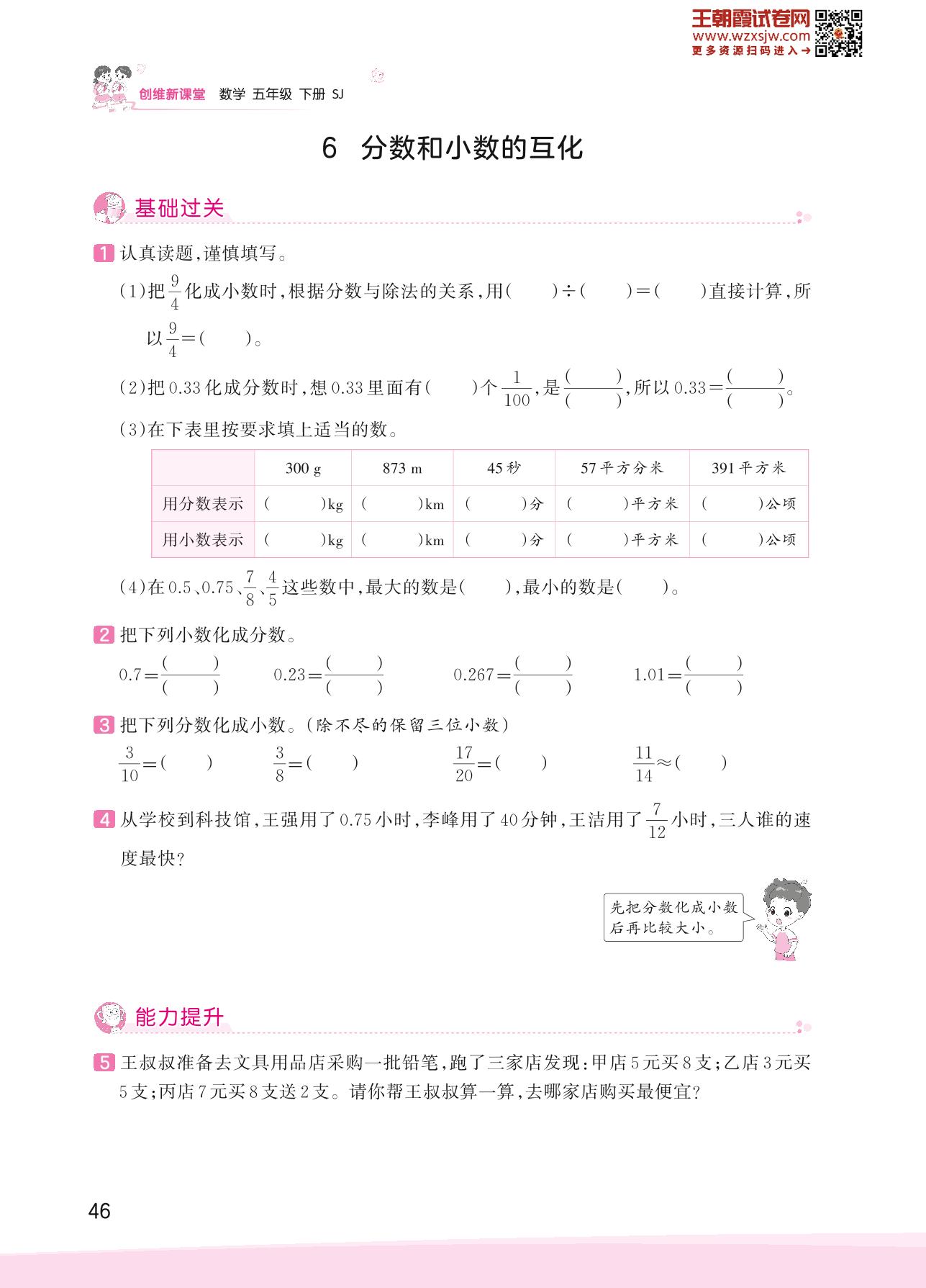 2023下册五年级数学苏教版 四 分数的意义和性质——6 分数和小数的互化
