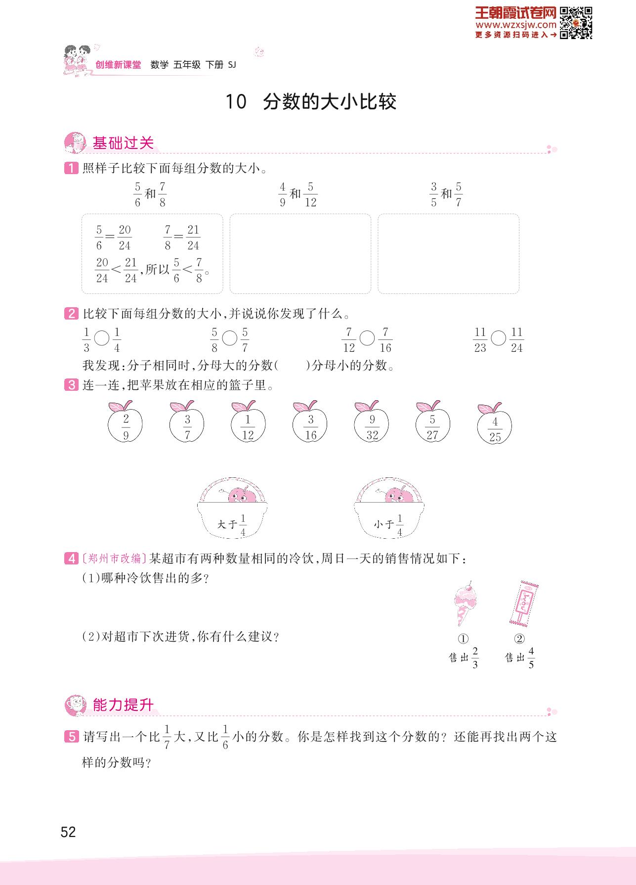 2023下册五年级数学苏教版 四 分数的意义和性质——10 分数的大小比较