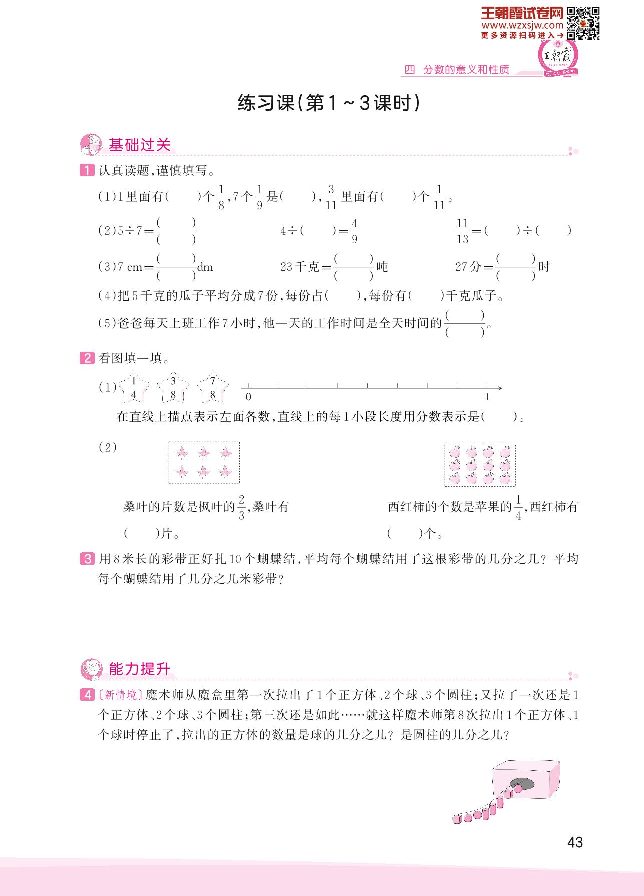 2023下册五年级数学苏教版 四 分数的意义和性质——练习课(第1~3课时)