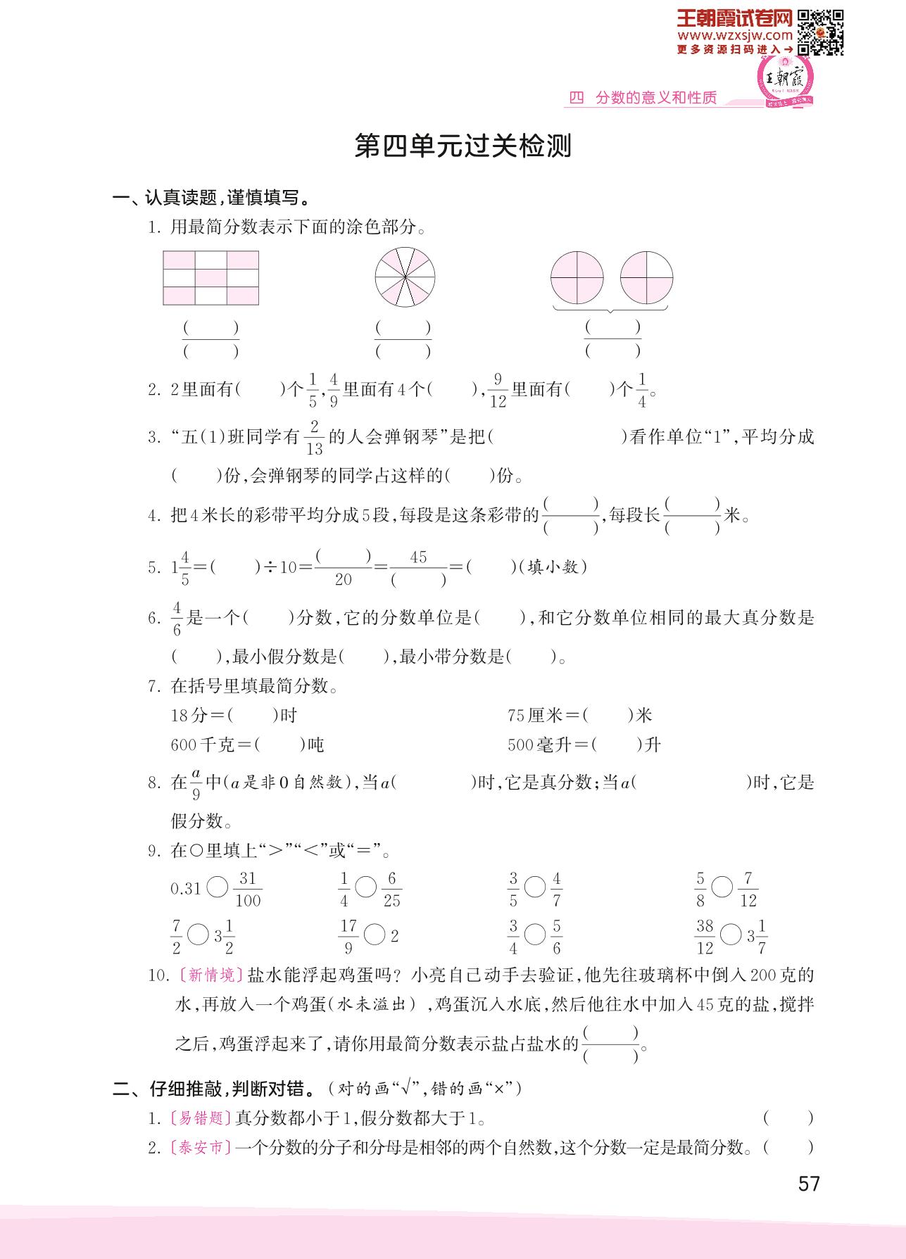 2023下册五年级数学苏教版 第四单元过关检测
