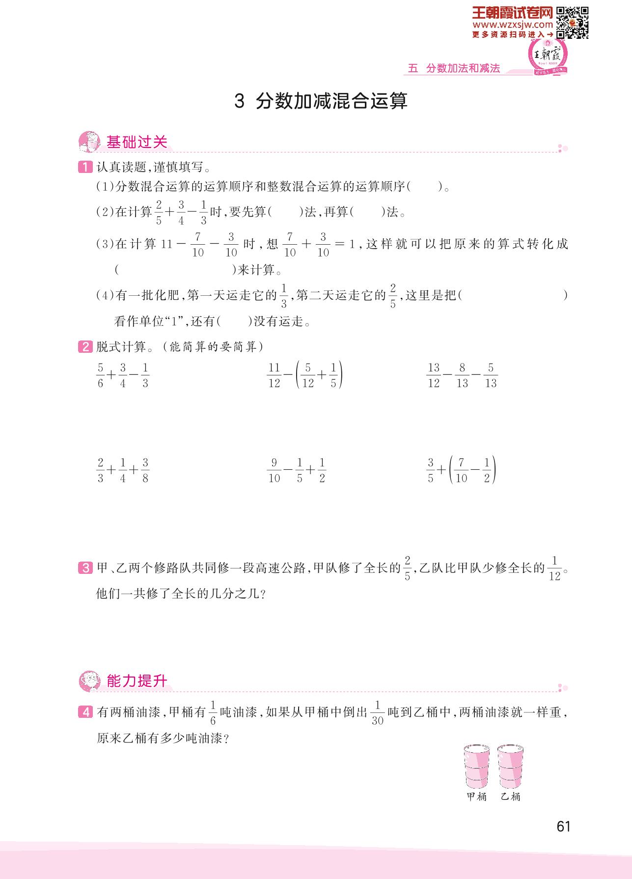 2023下册五年级数学苏教版 五 分数加法和减法——3 分数加减混合运算