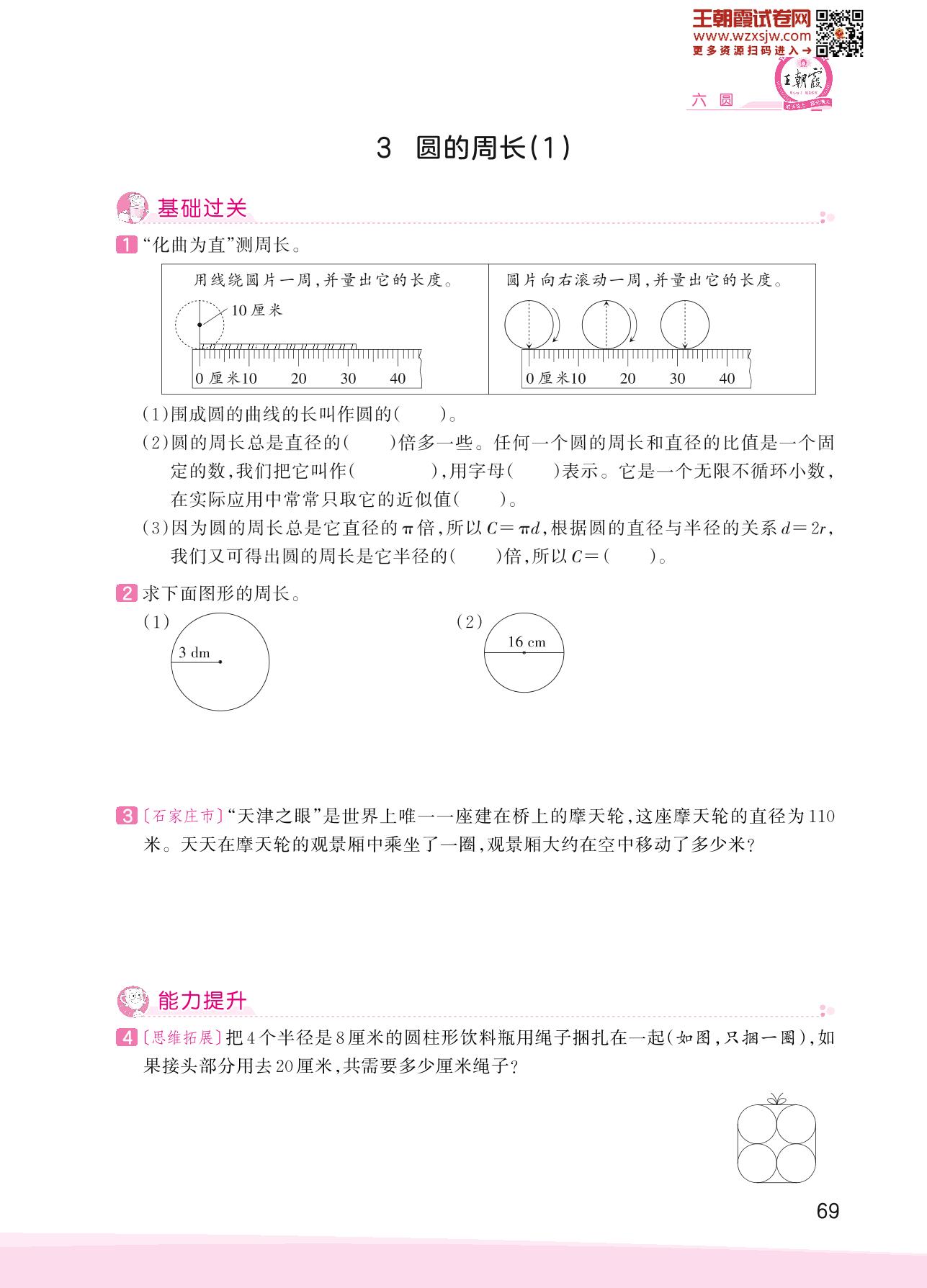 2023下册五年级数学苏教版 六 圆——3 圆的周长(1)
