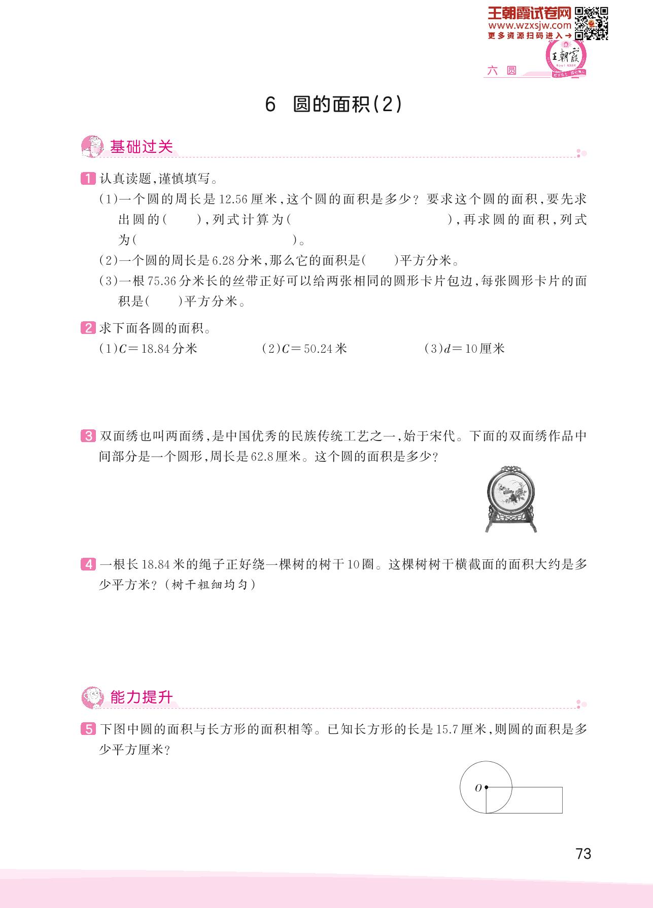 2023下册五年级数学苏教版 六 圆——6 圆的面积(2)