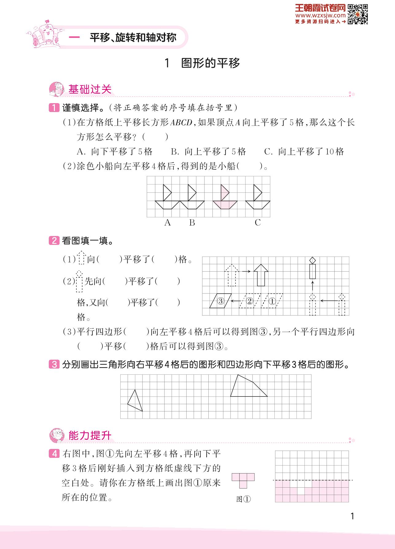2023下册四年级数学苏教版 一 平移、旋转和轴对称——1 图形的平移