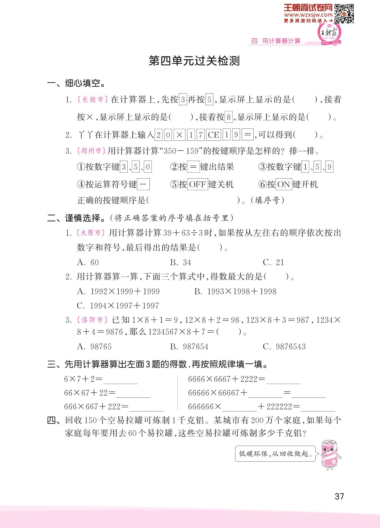四年级数学苏教版下册单元卷
