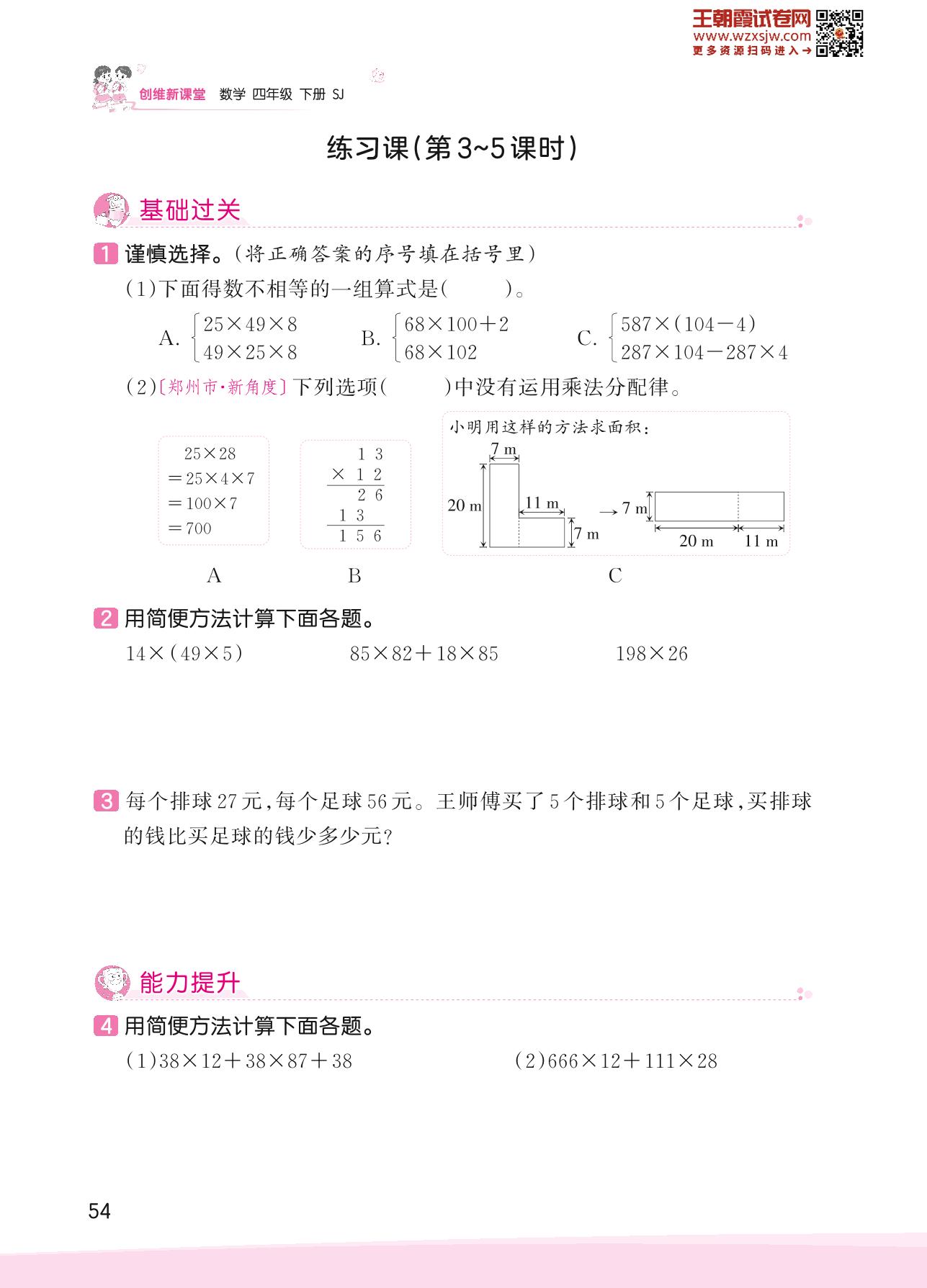 2023下册四年级数学苏教版 六 运算律——练习课(第3~5课时)