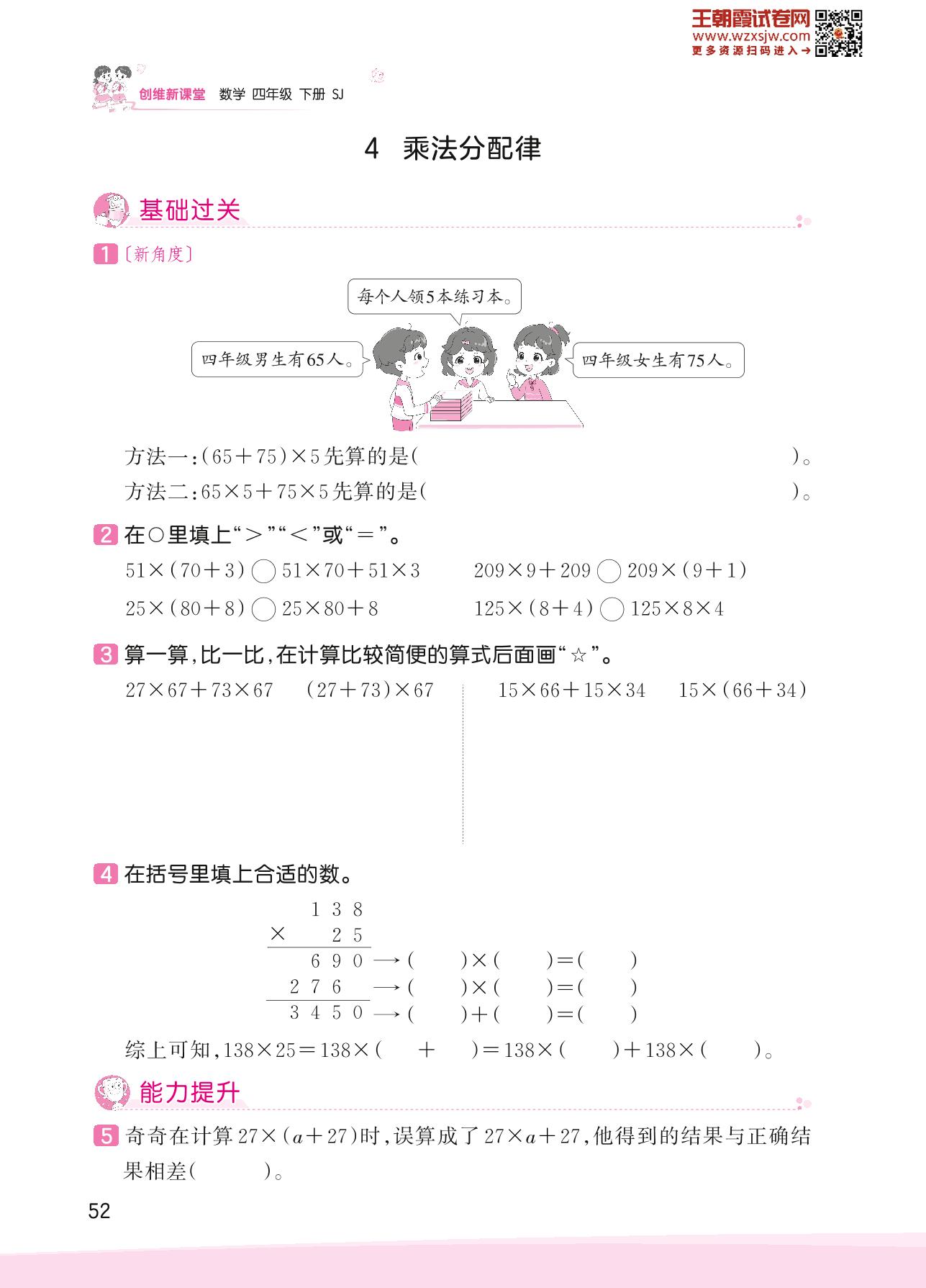 2023下册四年级数学苏教版 六 运算律——4 乘法分配律