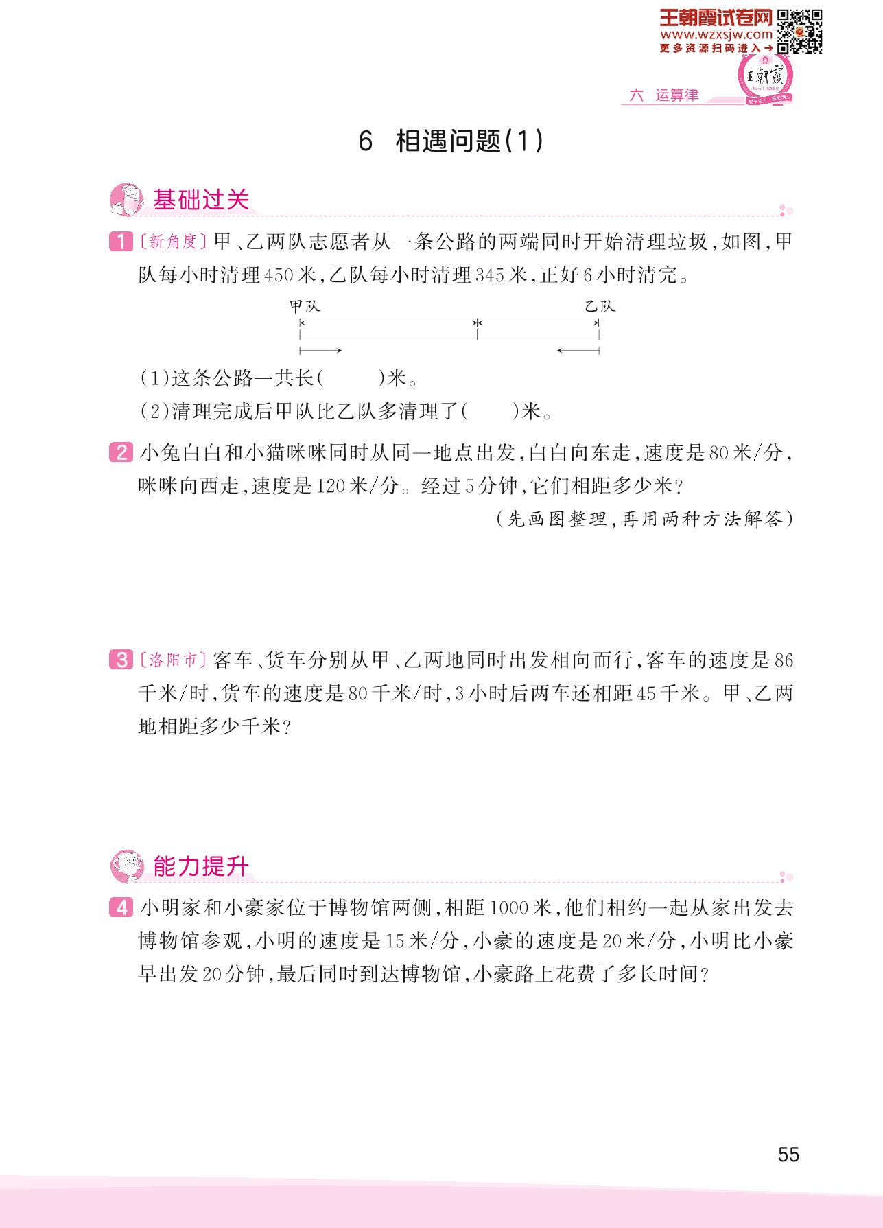 2023下册四年级数学苏教版 六 运算律——6 相遇问题(1)
