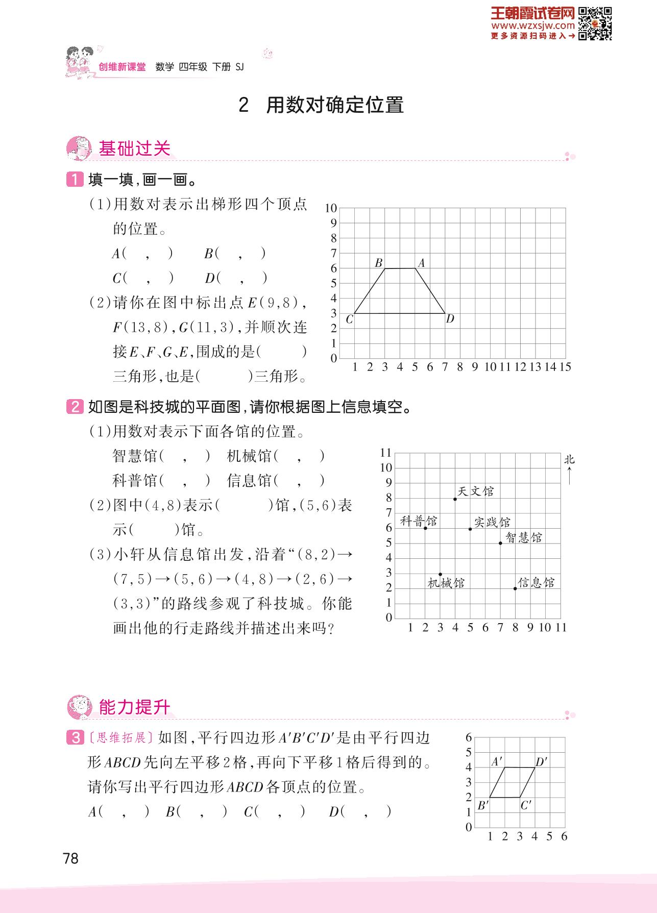 2023下册四年级数学苏教版 八 确定位置——2 用数对确定位置