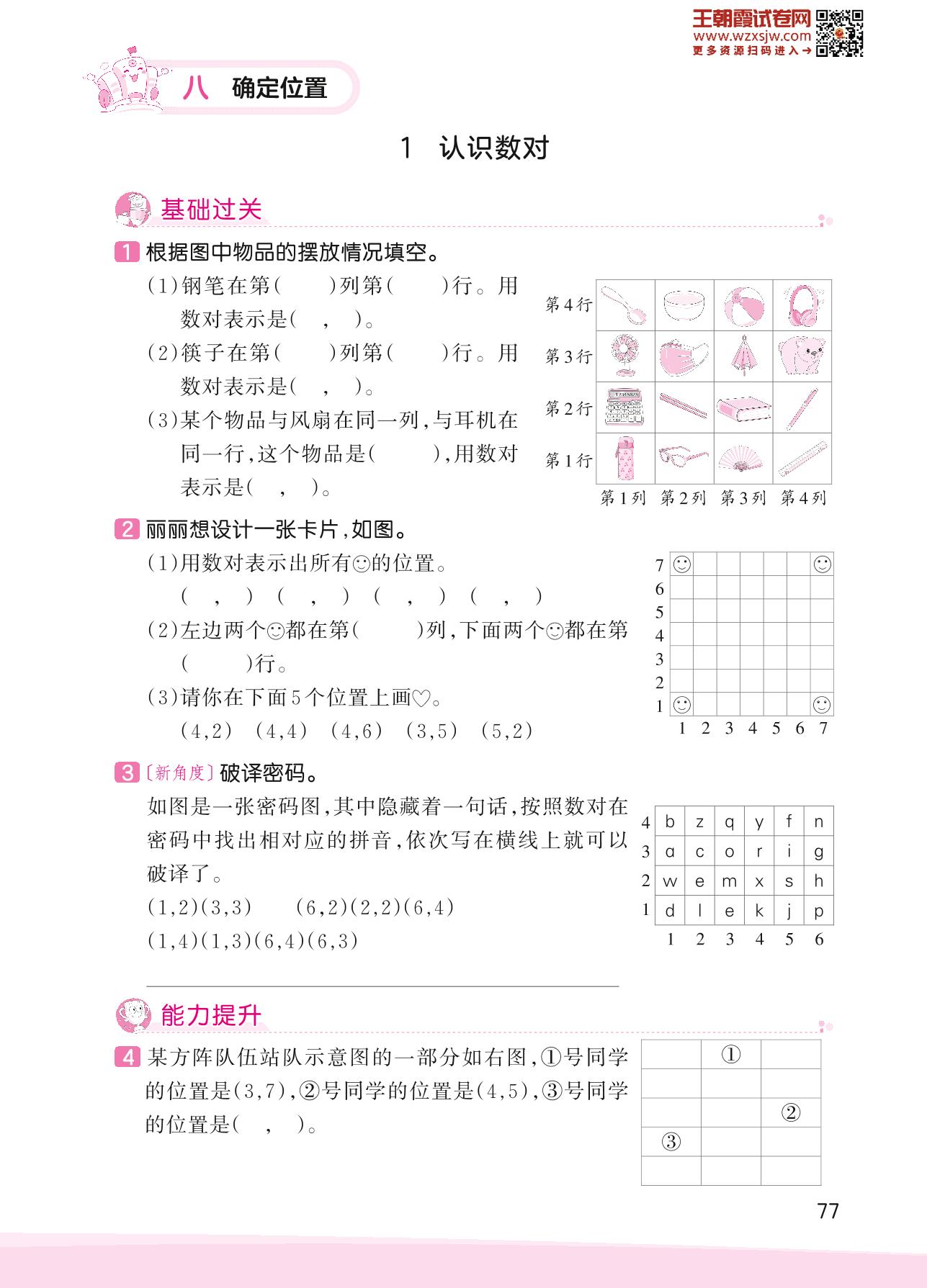 2023下册四年级数学苏教版 八 确定位置——1 认识数对