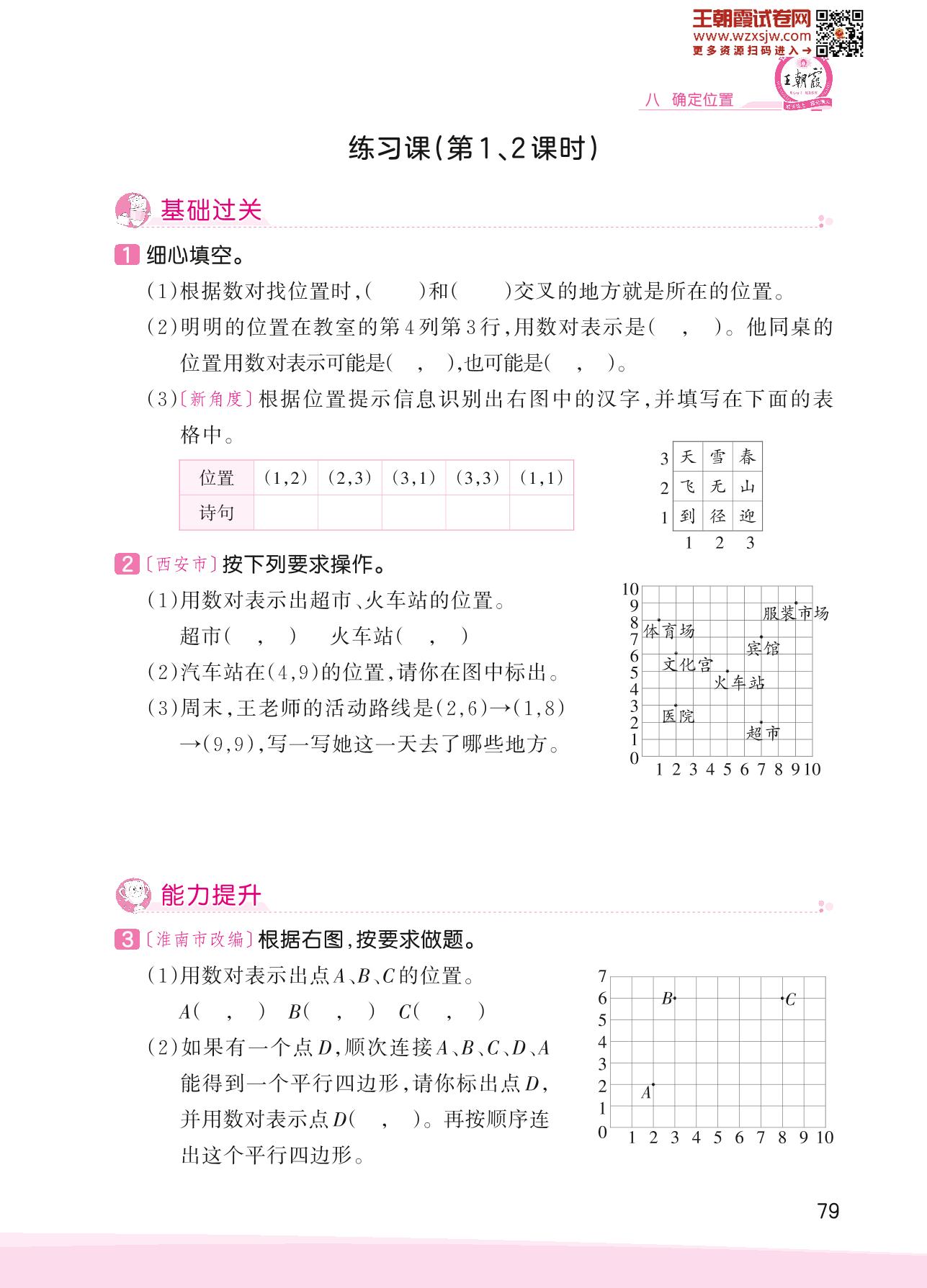 2023下册四年级数学苏教版 八 确定位置——练习课(第1、2课时)