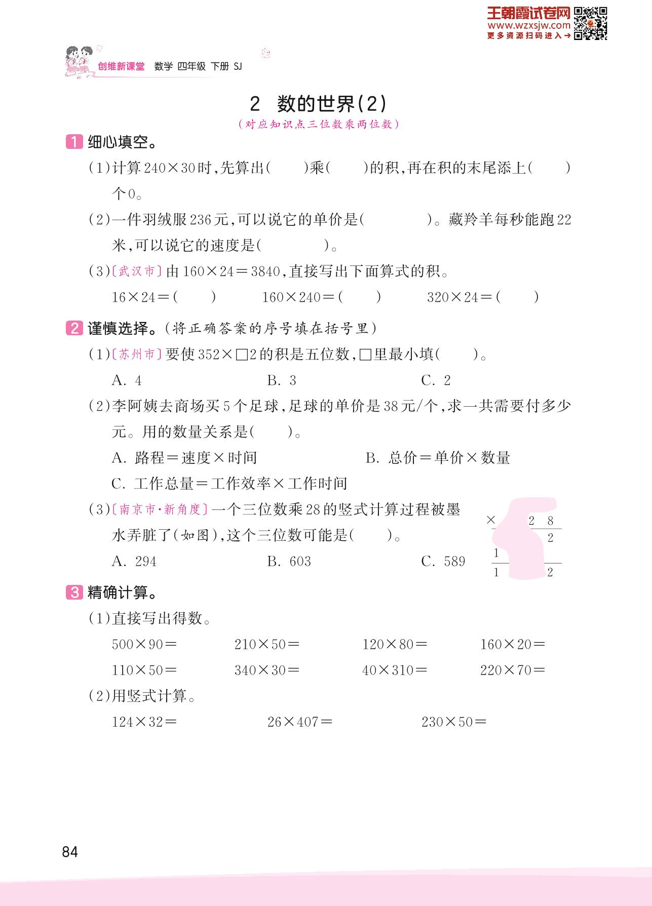 2023下册四年级数学苏教版 九 整理与复习——2 数的世界(2)