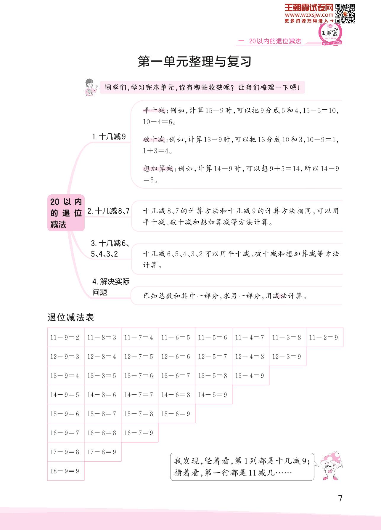 2023下册一年级数学苏教版 第一单元整理与复习