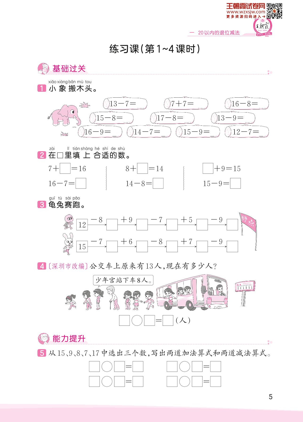 2023下册一年级数学苏教版 一 20以内的退位减法——练习课(第1~4课时)