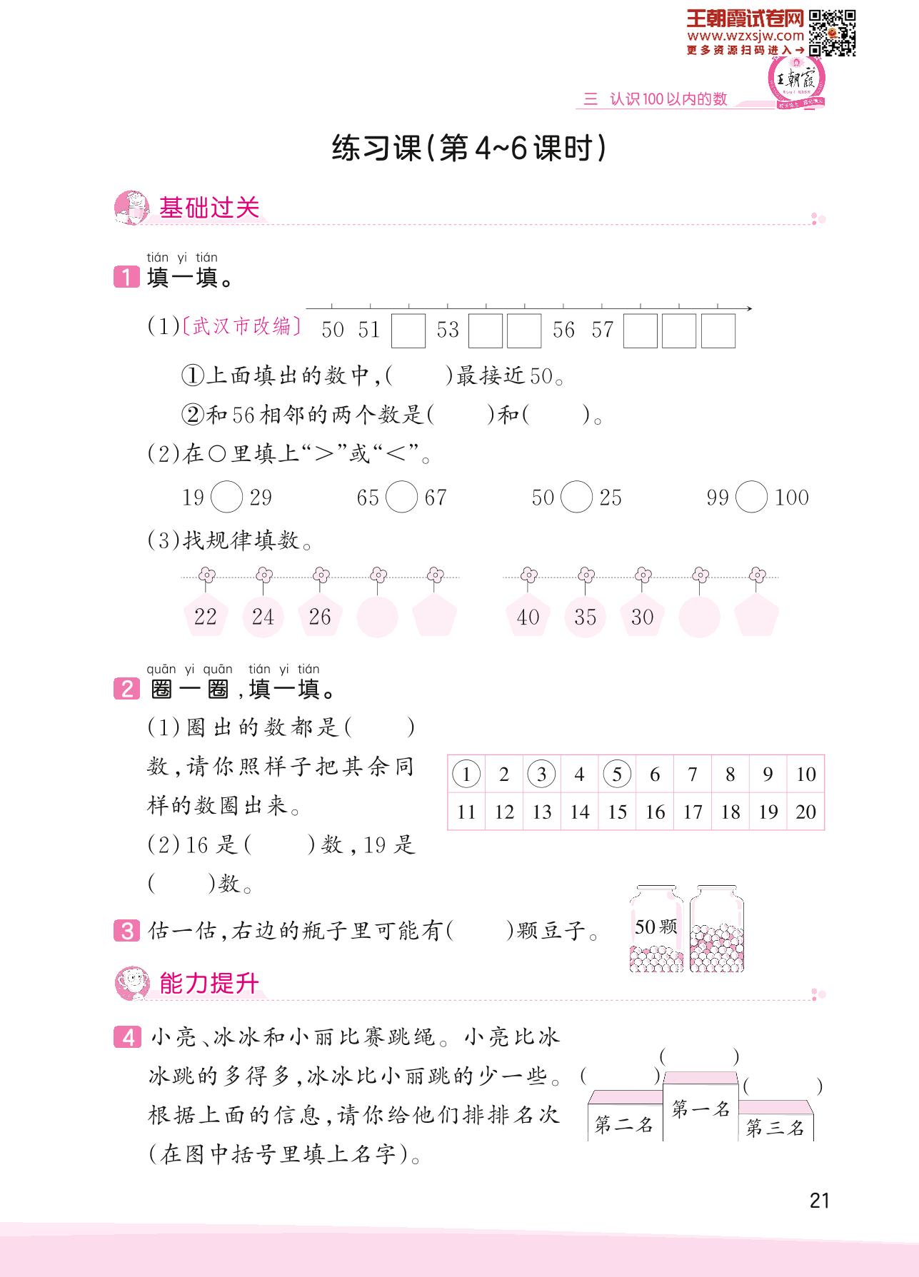2023下册一年级数学苏教版 三 认识100以内的数——练习课(第4~6课时)
