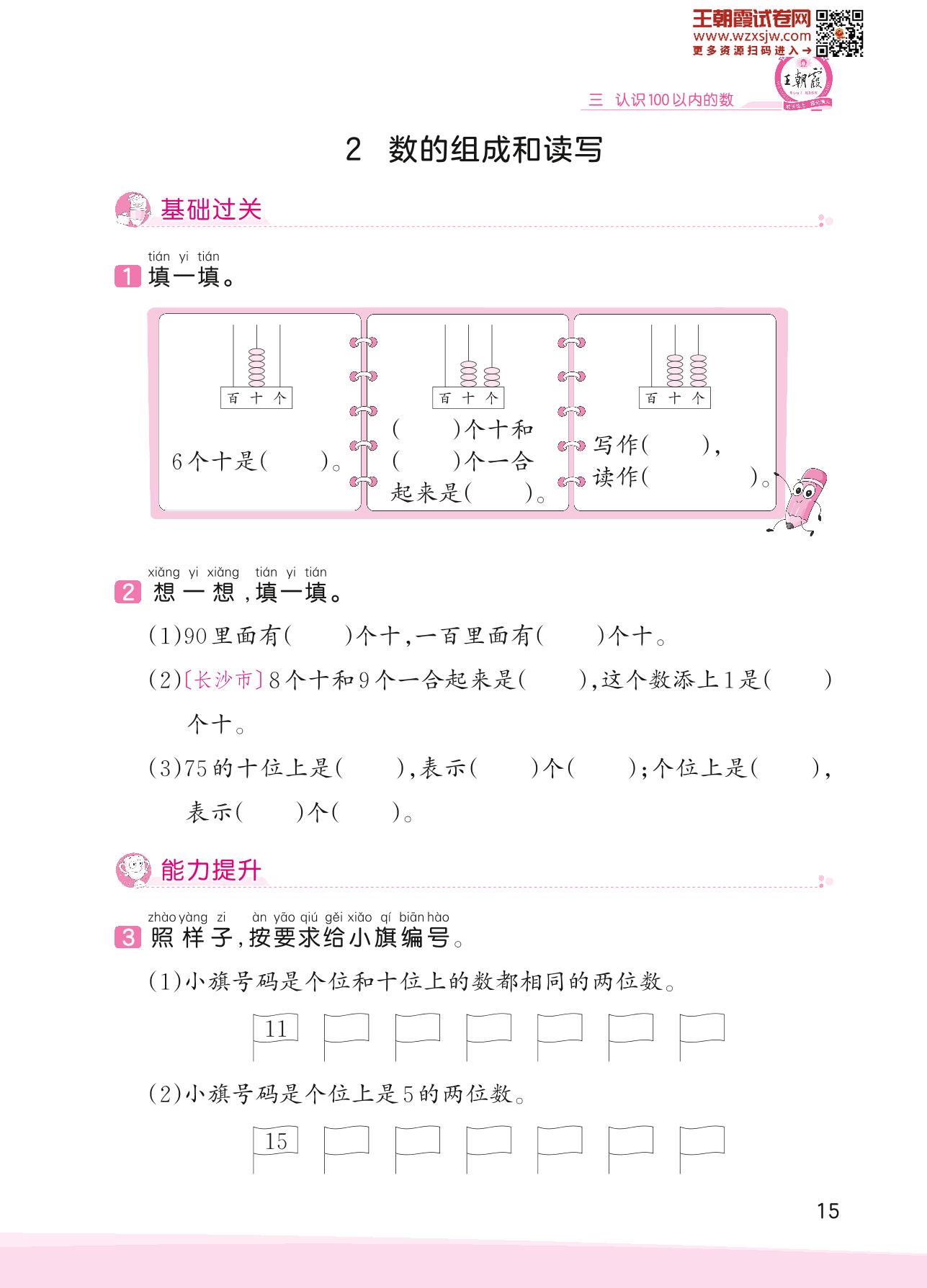 2023下册一年级数学苏教版 三 认识100以内的数——2 数的组成和读写