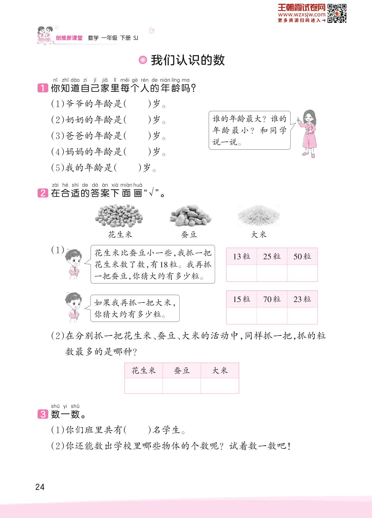 2023下册一年级数学苏教版 三 认识100以内的数——我们认识的数