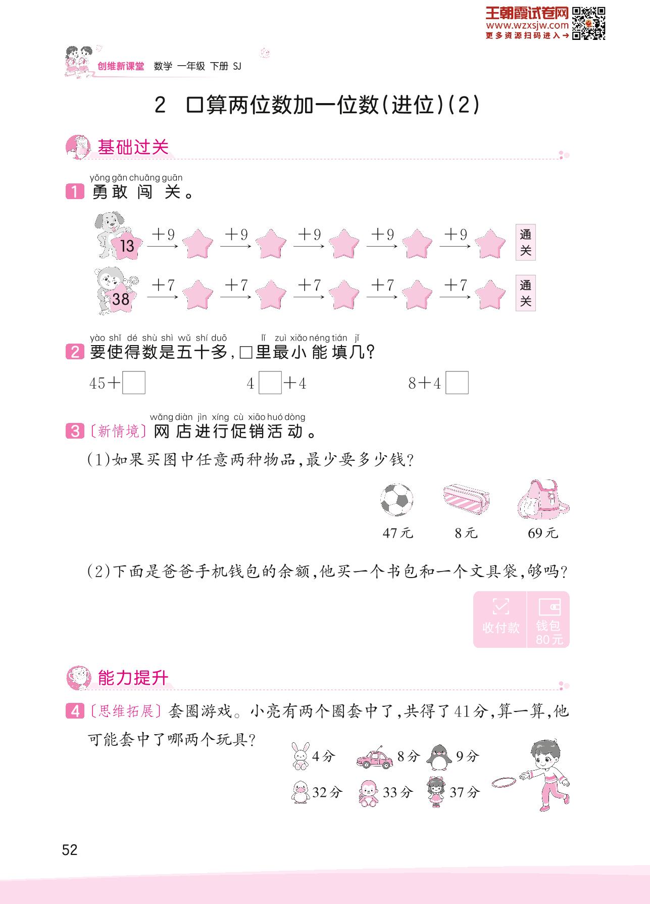 2023下册一年级数学苏教版 六 100以内的加法和减法(二)——2 口算两位数加一位数(进位)(2)