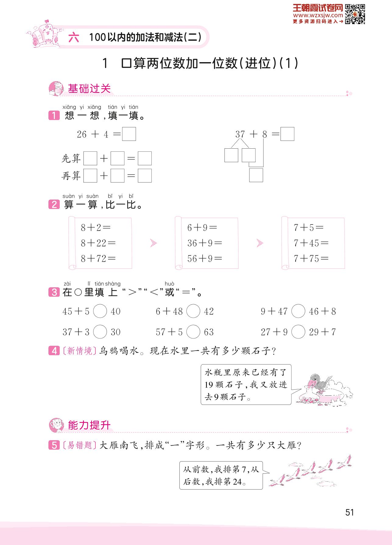 2023下册一年级数学苏教版 六 100以内的加法和减法(二)——1 口算两位数加一位数(进位)(1)