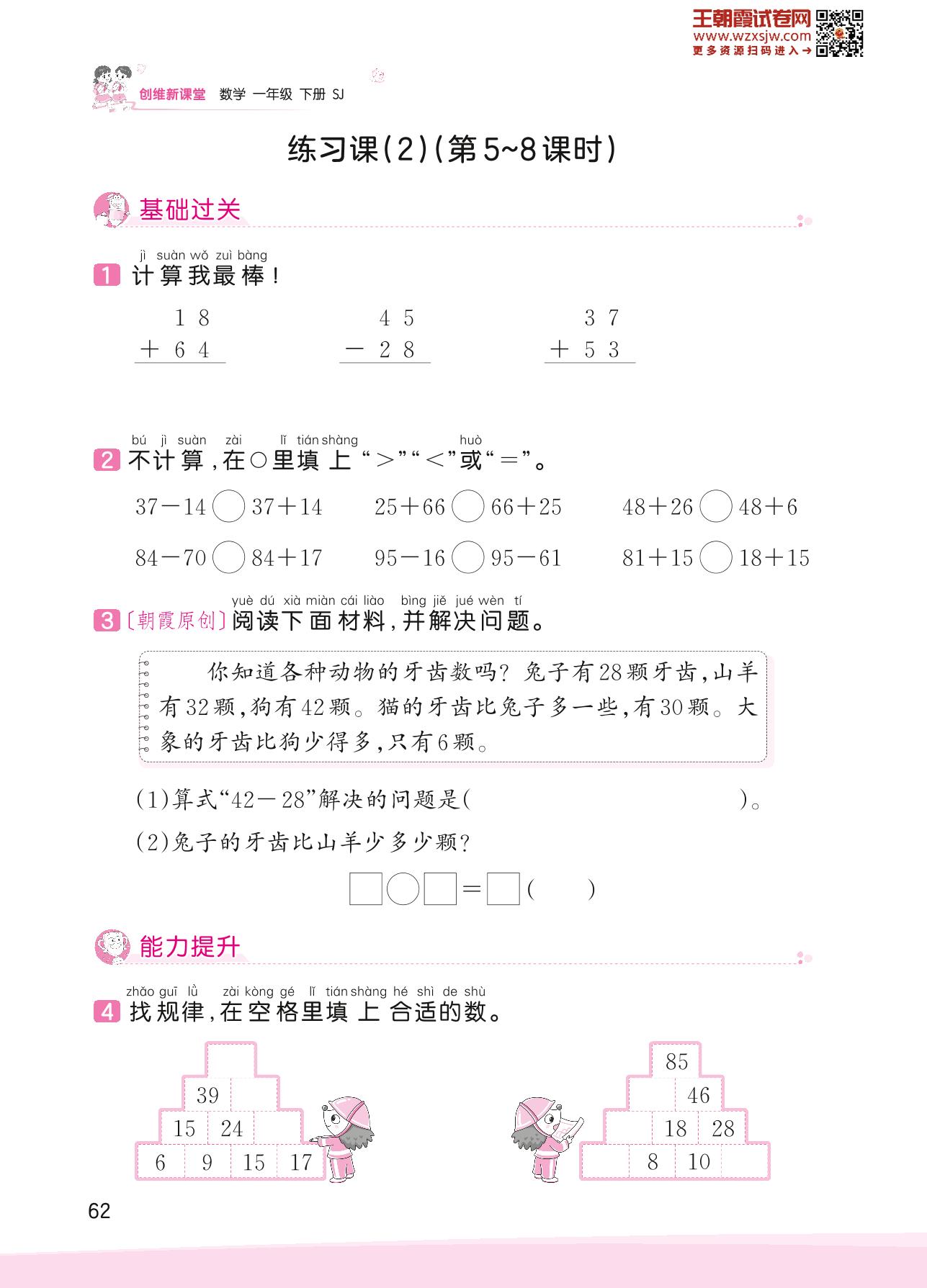 2023下册一年级数学苏教版 六 100以内的加法和减法(二)——练习课(2)(第5~8课时)