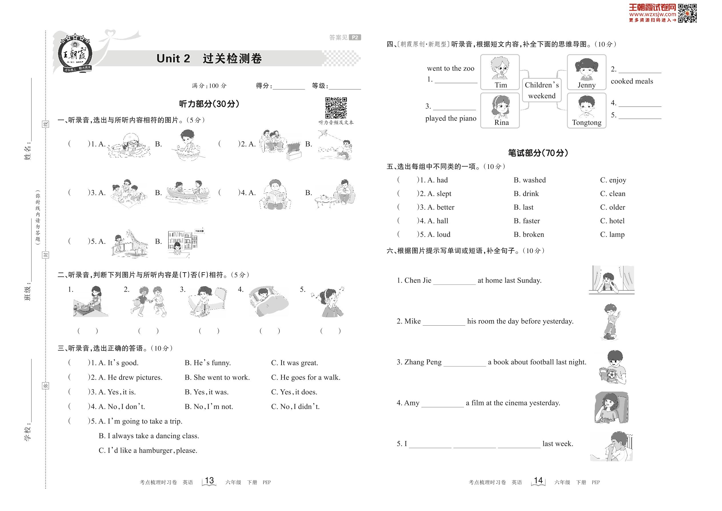 2023下册六年级英语人教PEP版 Unit 2 过关检测卷