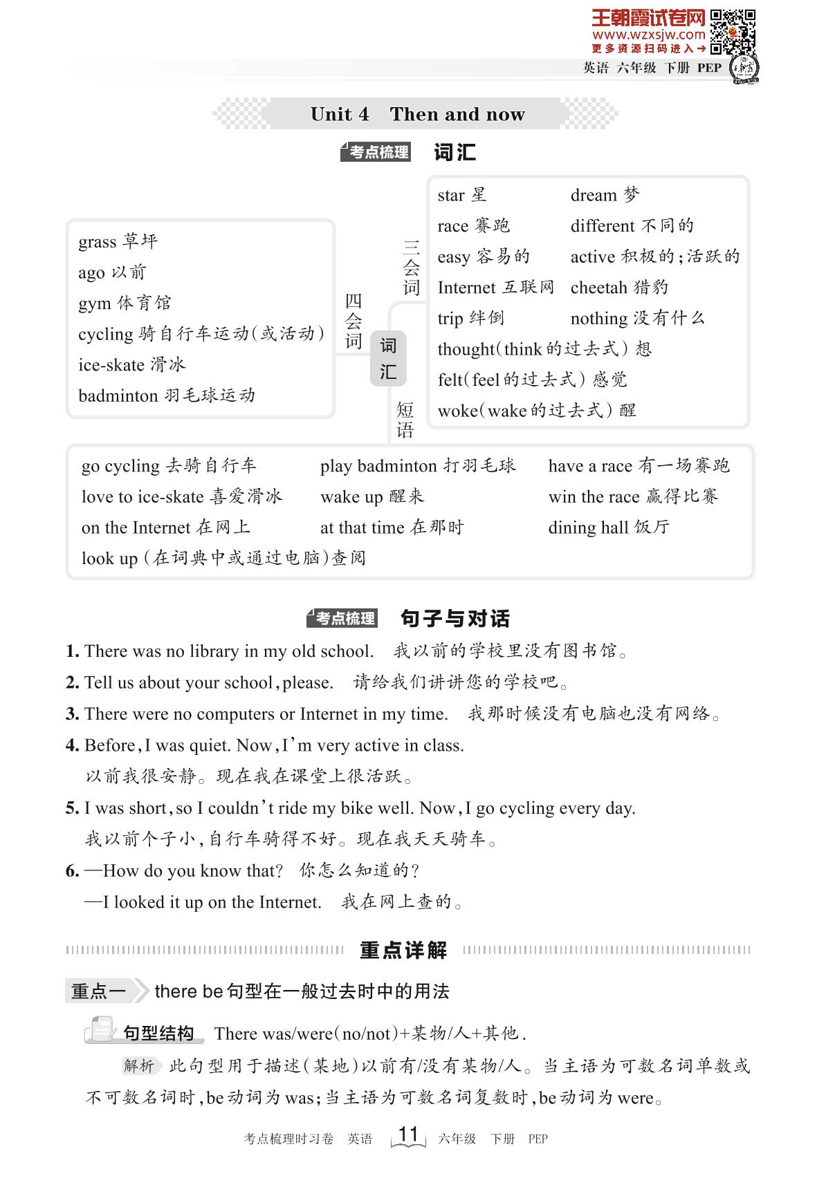2023下册六年级英语人教PEP版 考点梳理手册——Unit 4 Then and now