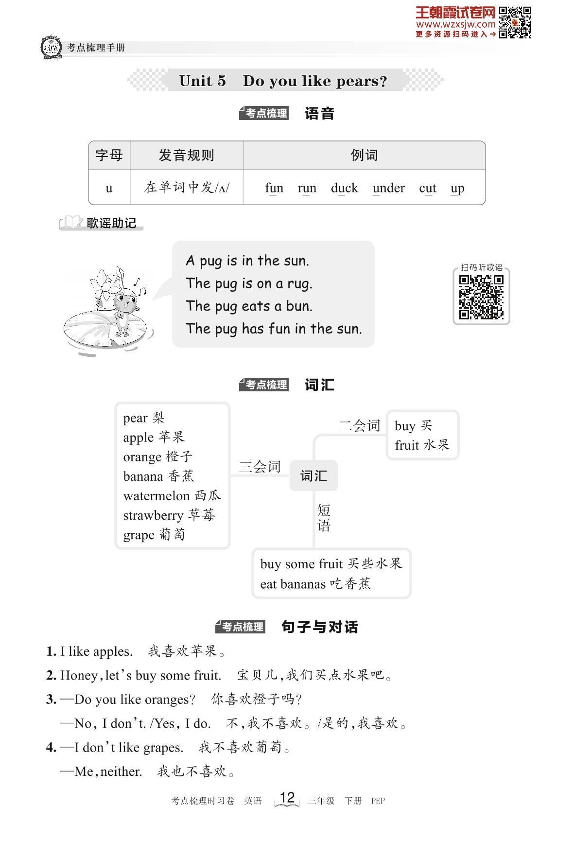 2023下册三年级英语人教PEP版 考点梳理手册——Unit 5 Do you like pears?