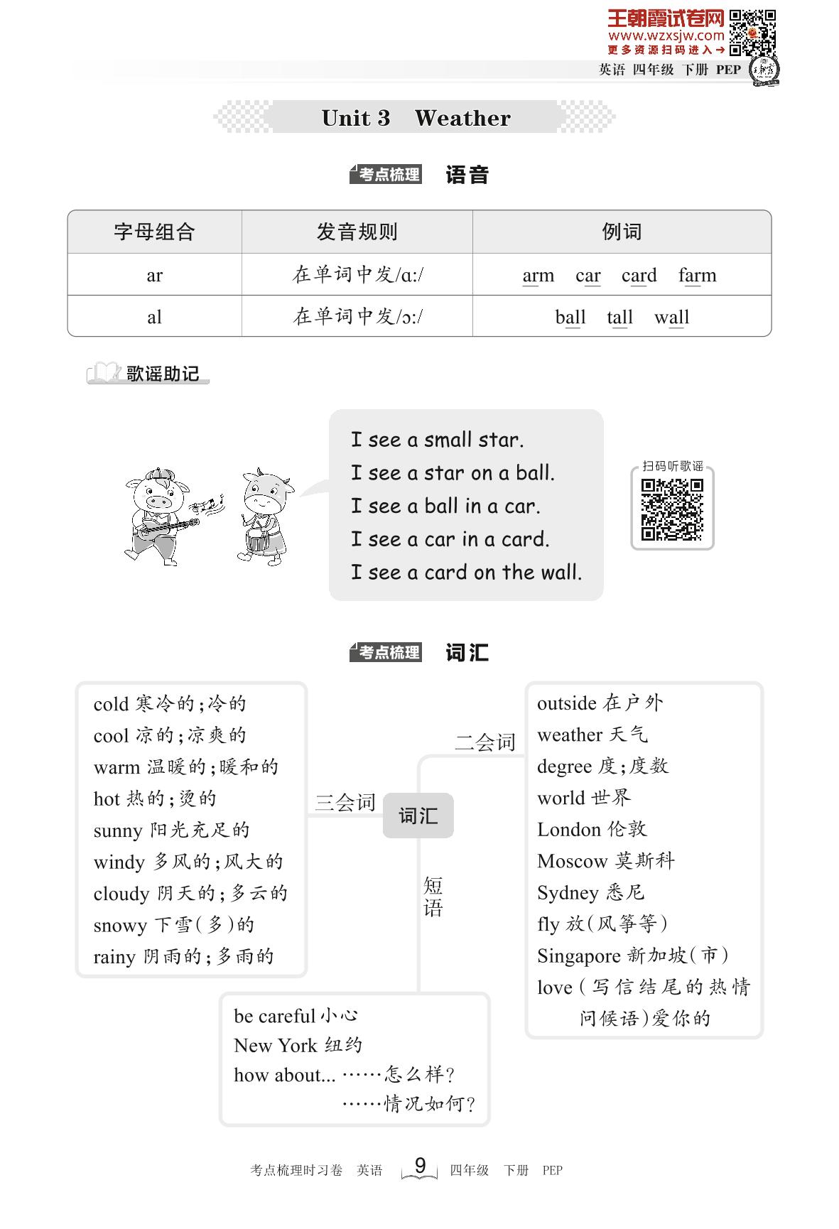 2023下册四年级英语人教PEP版 考点梳理手册——Unit 3 Weather