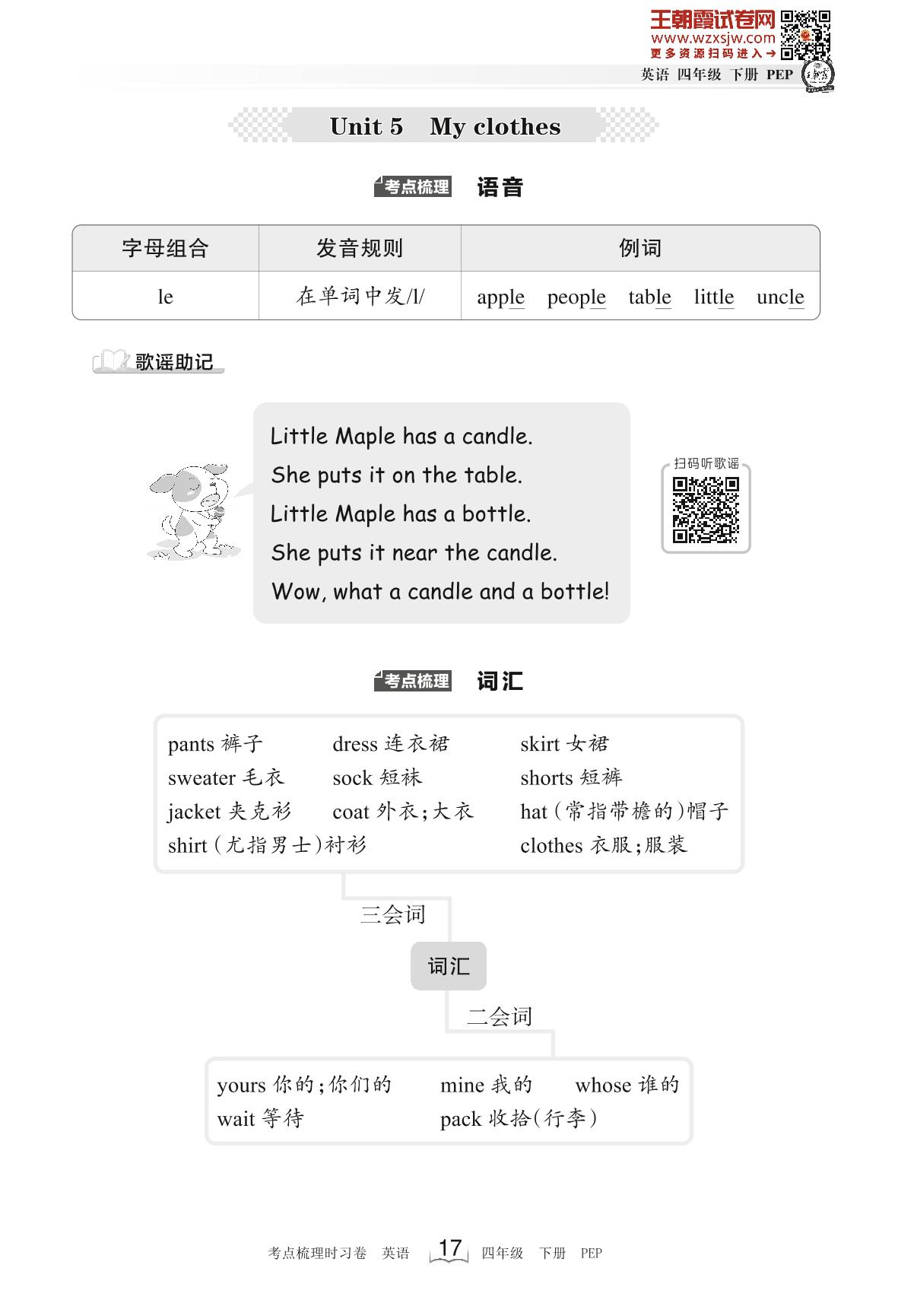 2023下册四年级英语人教PEP版 考点梳理手册——Unit 5 My clothes
