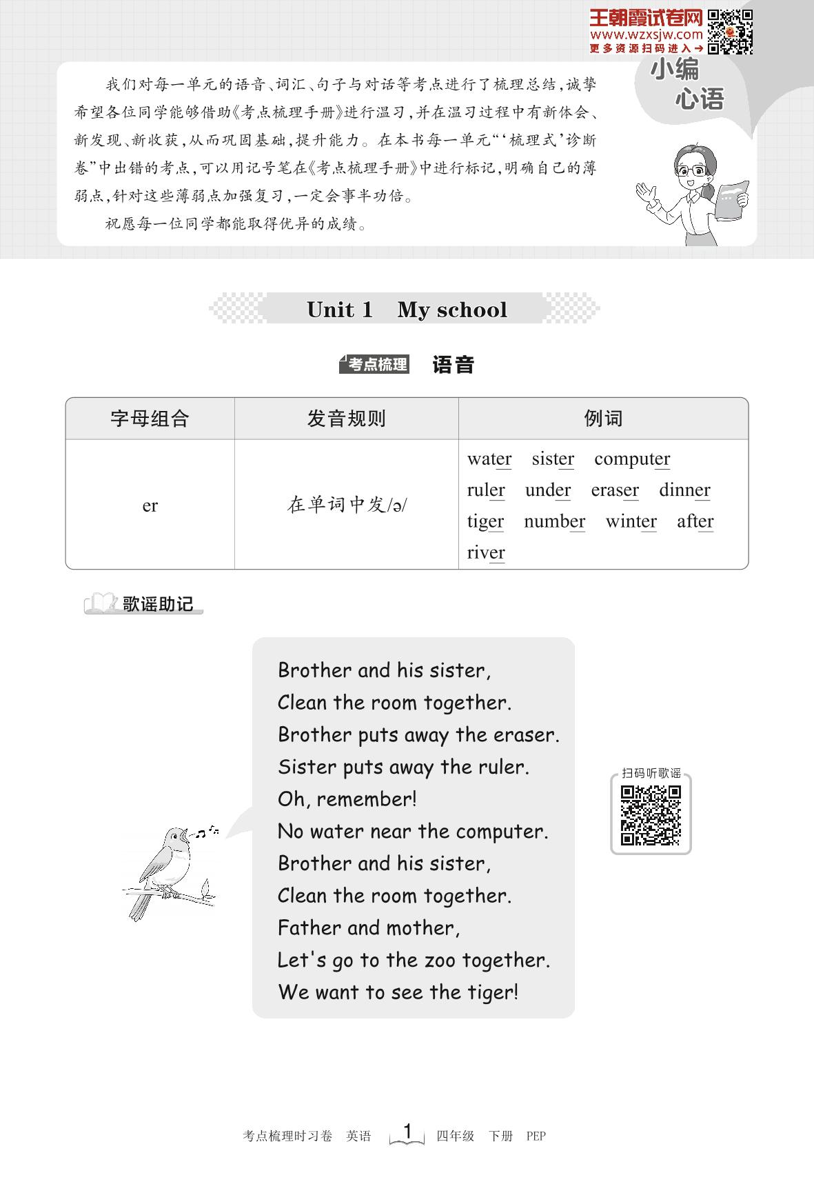 2023下册四年级英语人教PEP版 考点梳理手册——Unit 1 My school