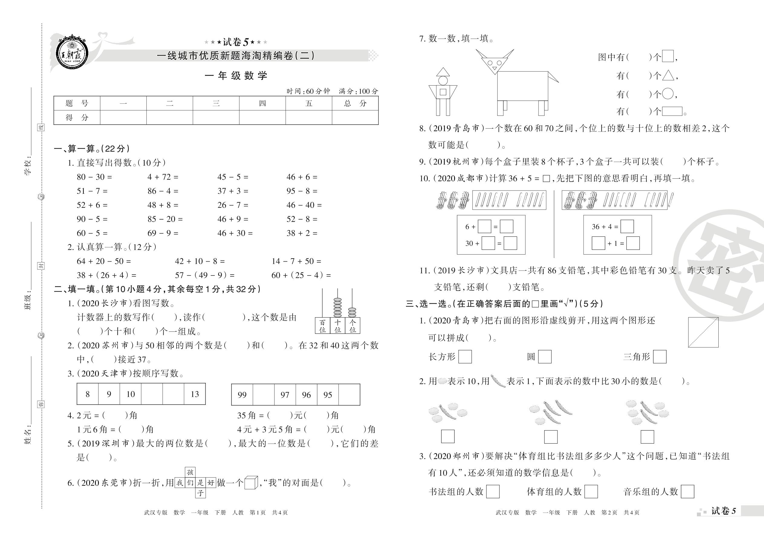 王朝霞海淘期末精编卷一年级下册数学(人教版)_R210802210737【5】