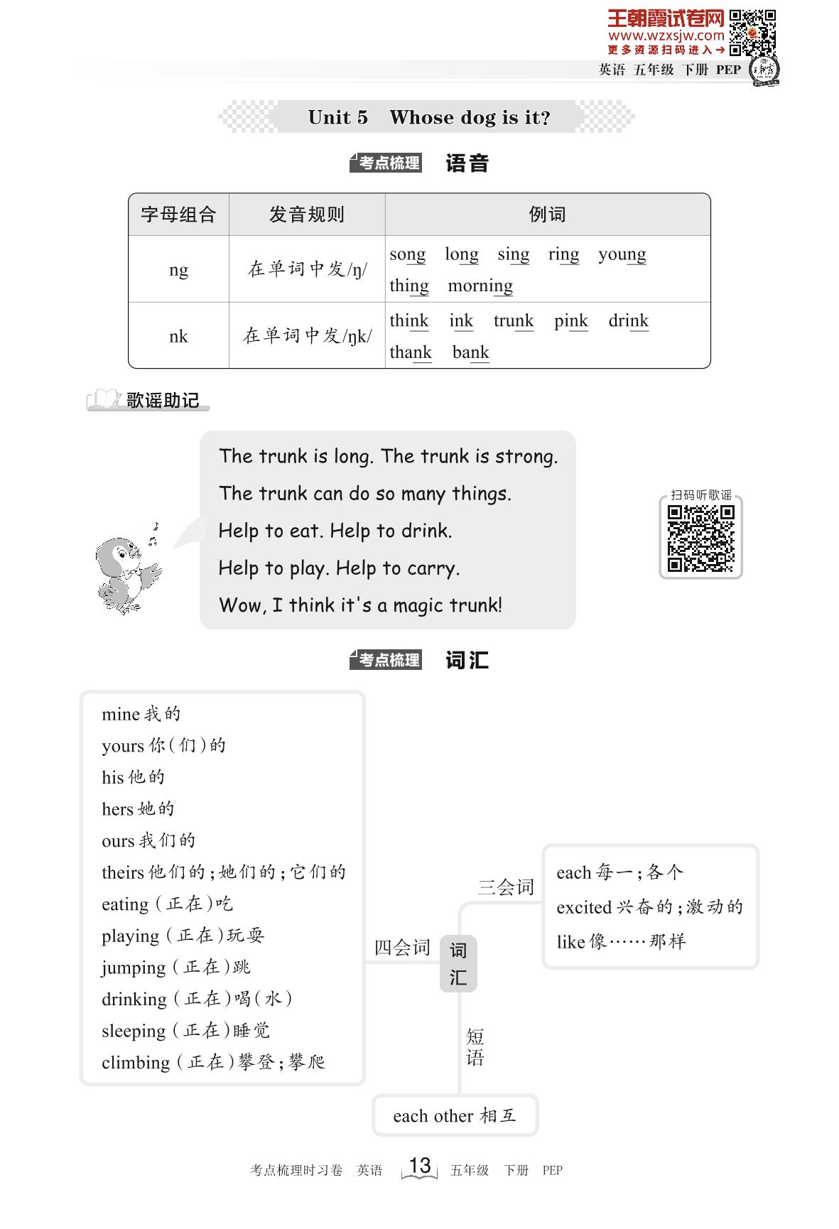 2023下册五年级英语人教PEP版 考点梳理手册——Unit 5 Whose dog is it?