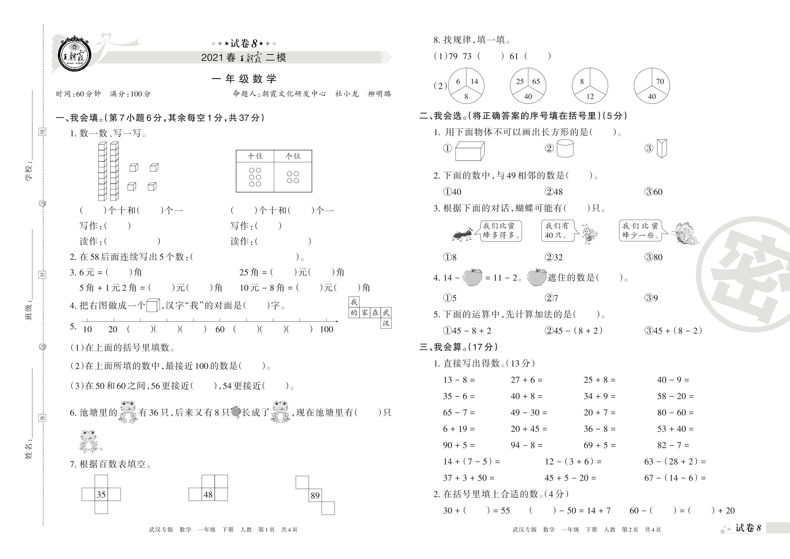 王朝霞期末模拟卷一年级下册数学(人教版)_R210802210745【8】