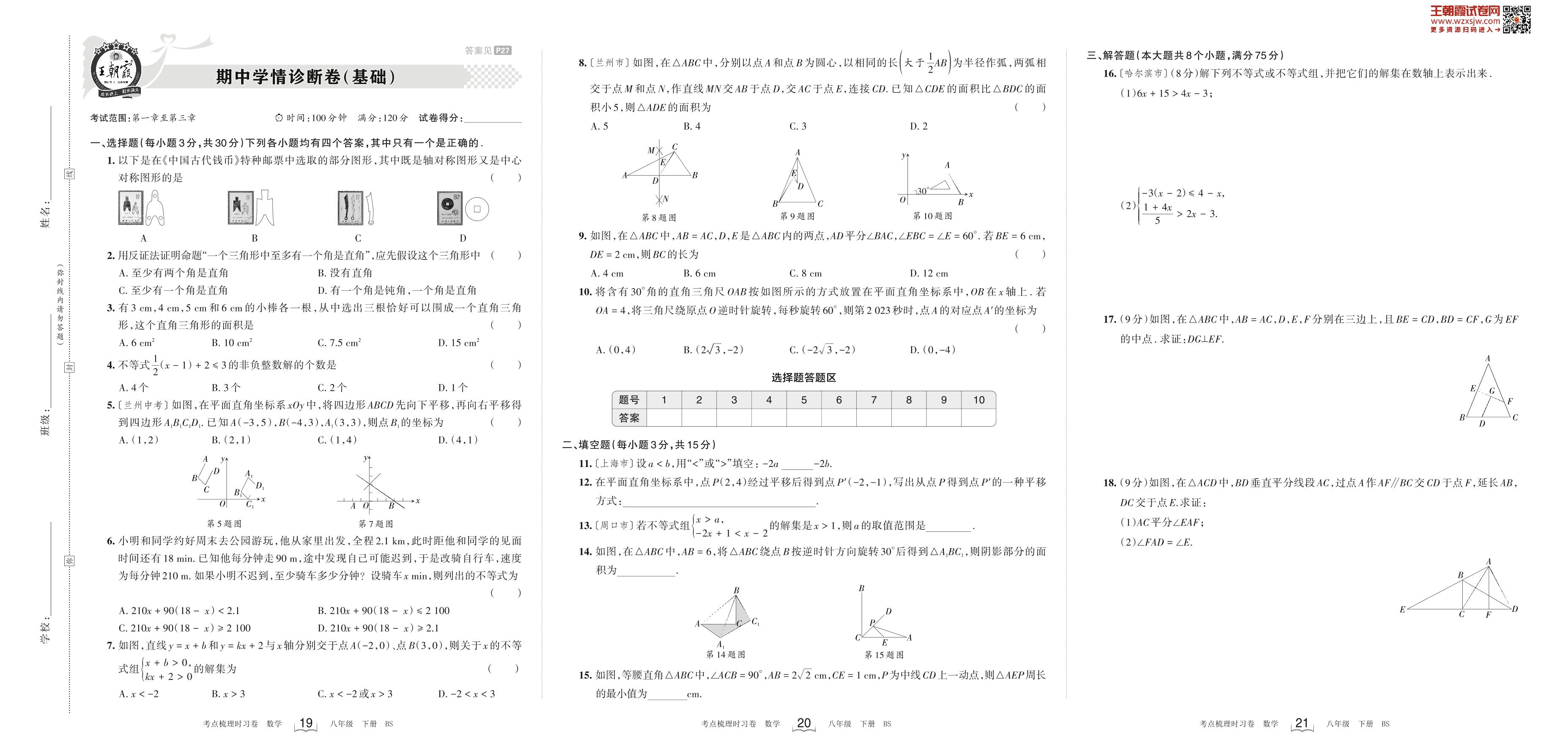 2023下册八年级数学北师版 期中学情诊断卷(基础)