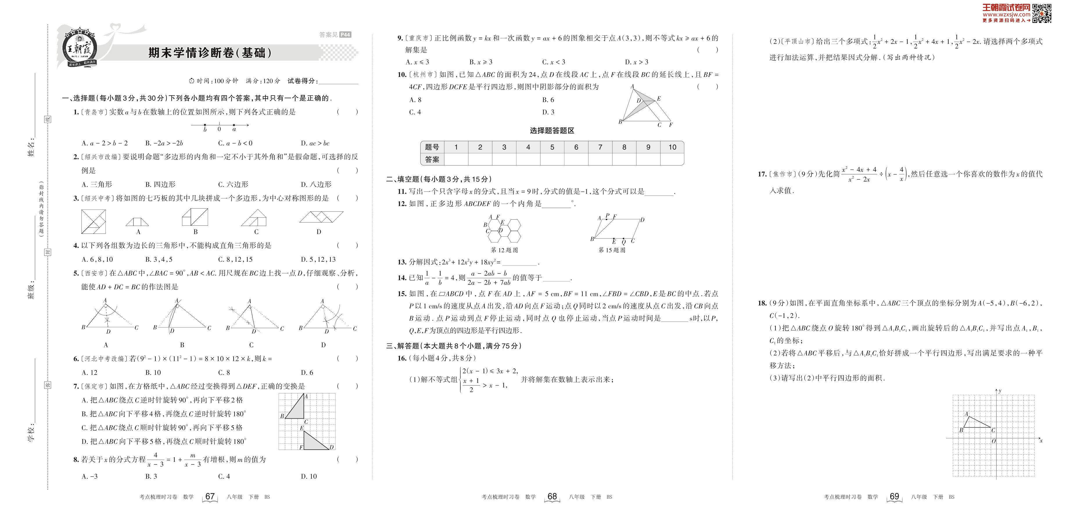 2023下册八年级数学北师版 期末学情诊断卷(基础)