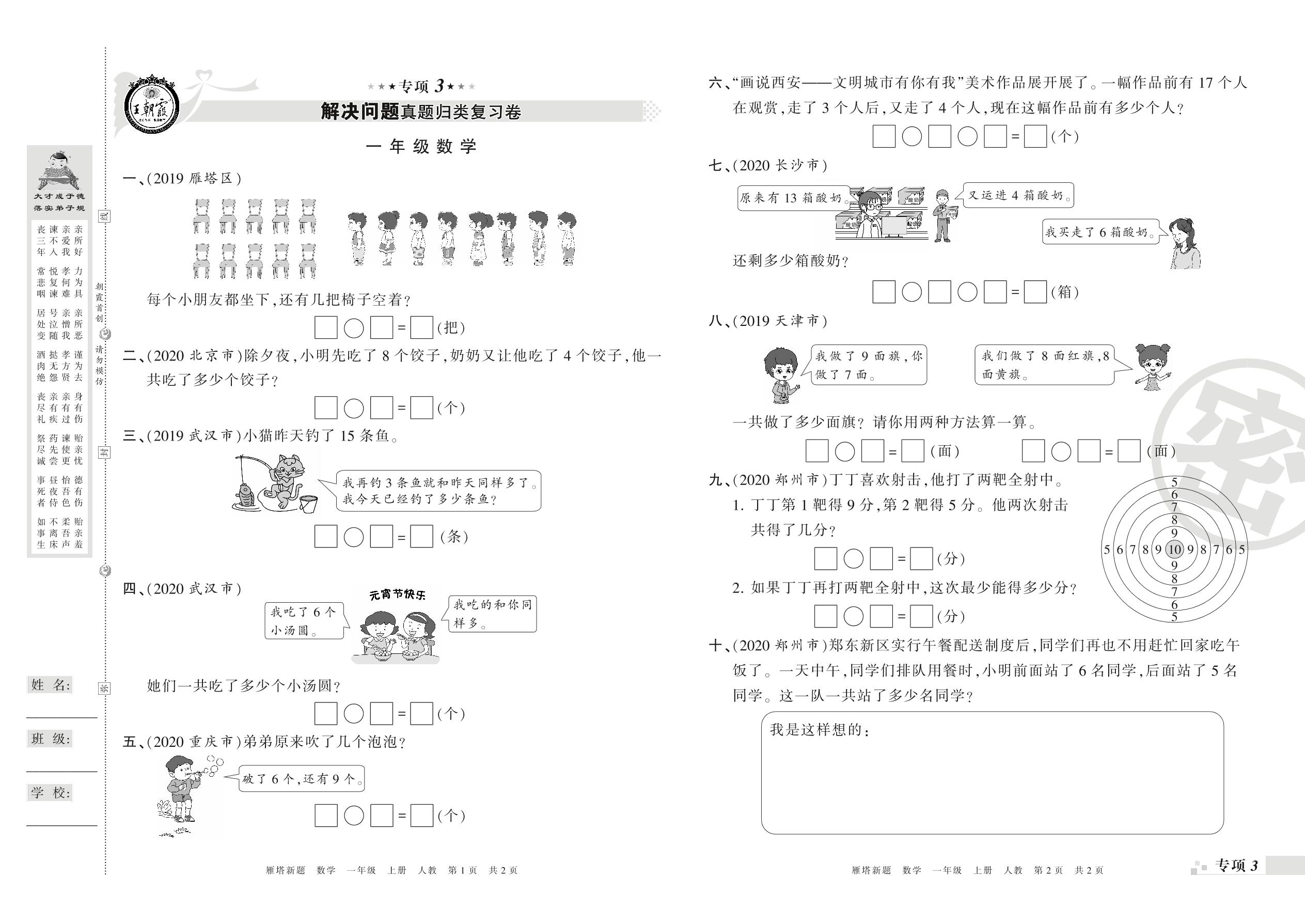 王朝霞期末专项卷——解决问题真题归类复习、新颖题速递:生活与数学一年级上册数学(人教版)_R210802210816【0】