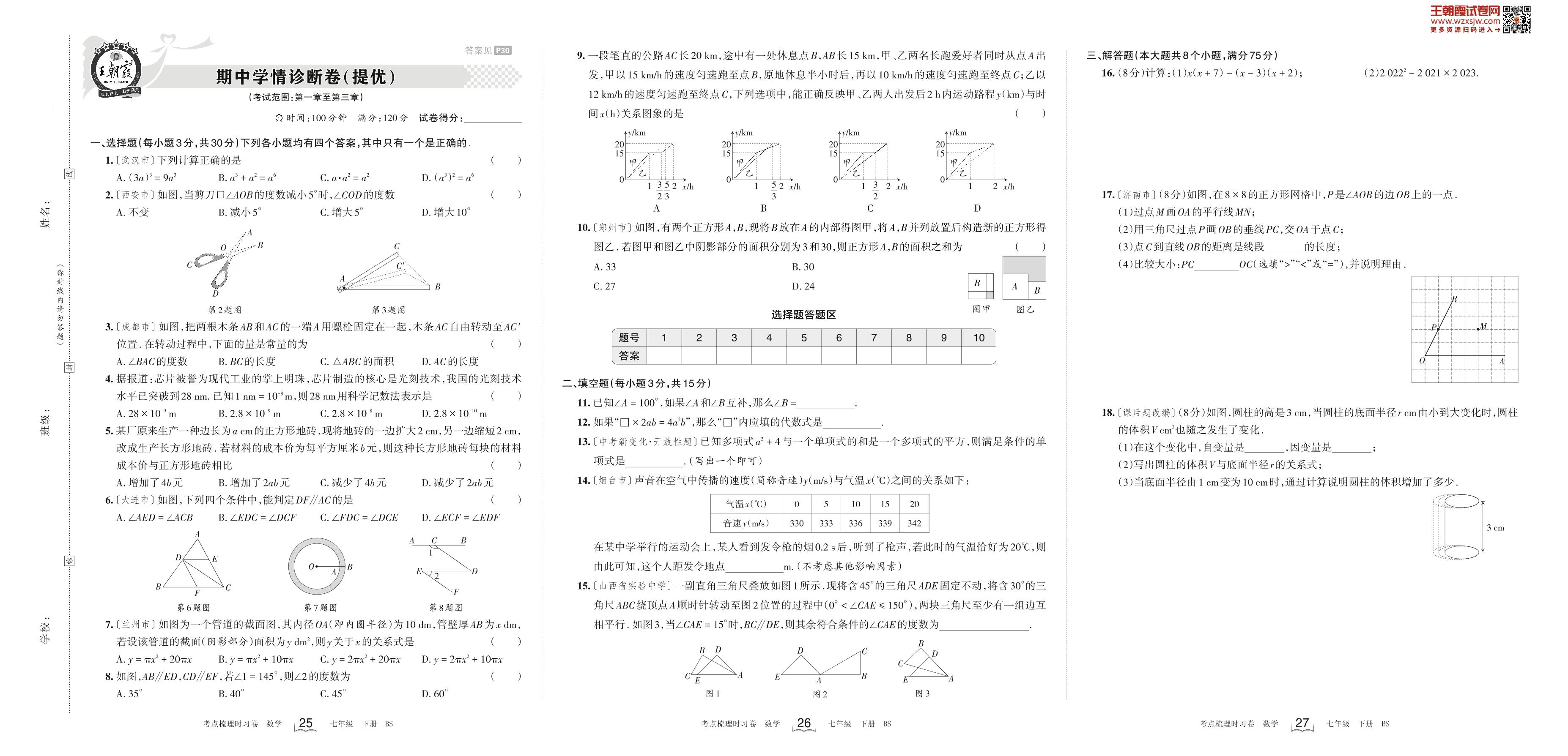2023下册七年级数学北师版 期中学情诊断卷(提优)