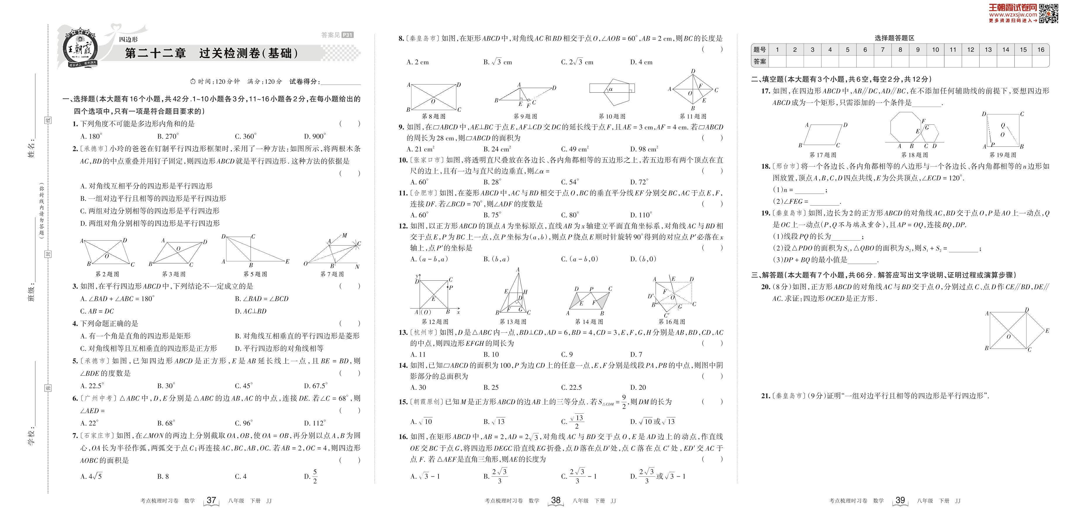 八年级数学冀教版下册单元卷