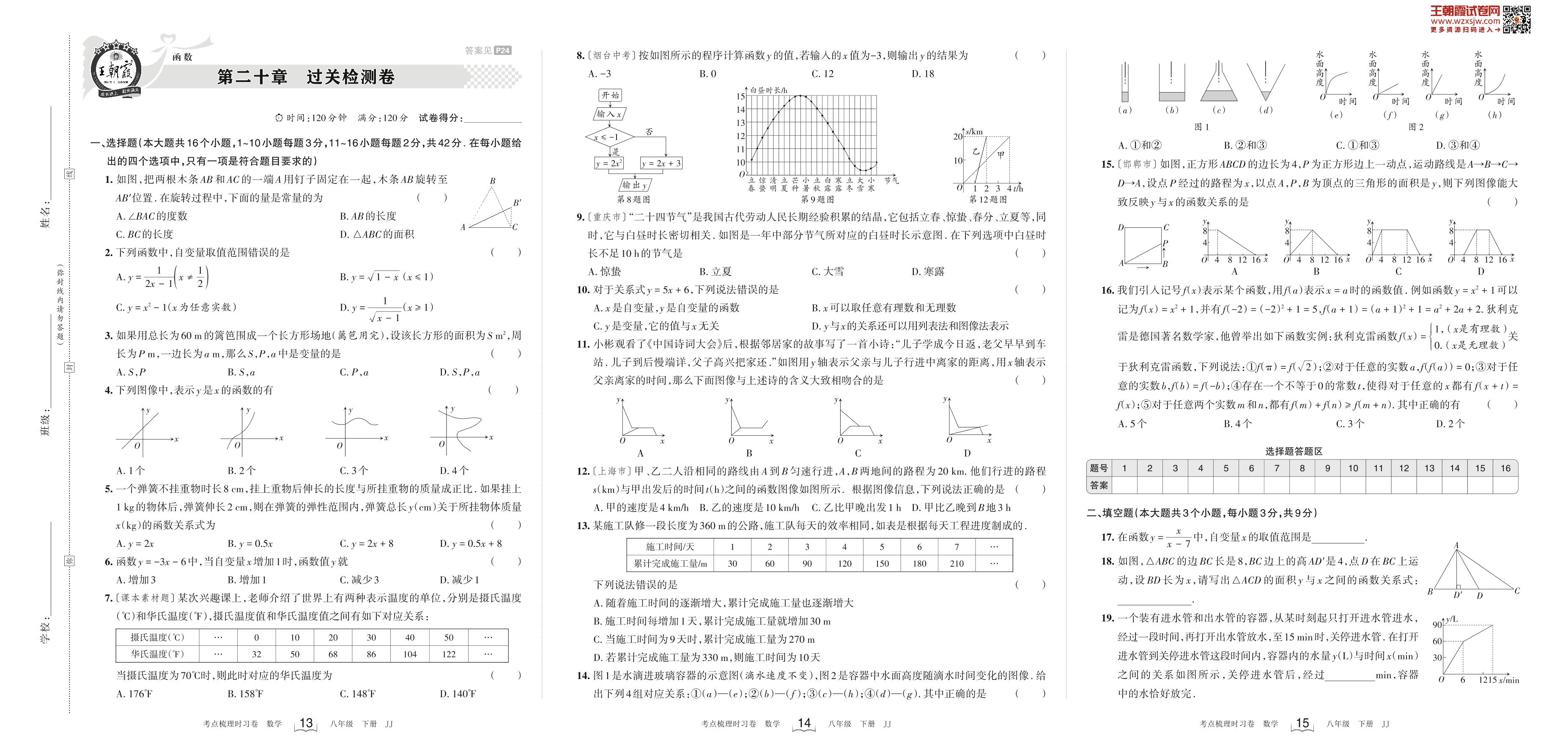2023下册八年级数学冀教版 第二十章 过关检测卷