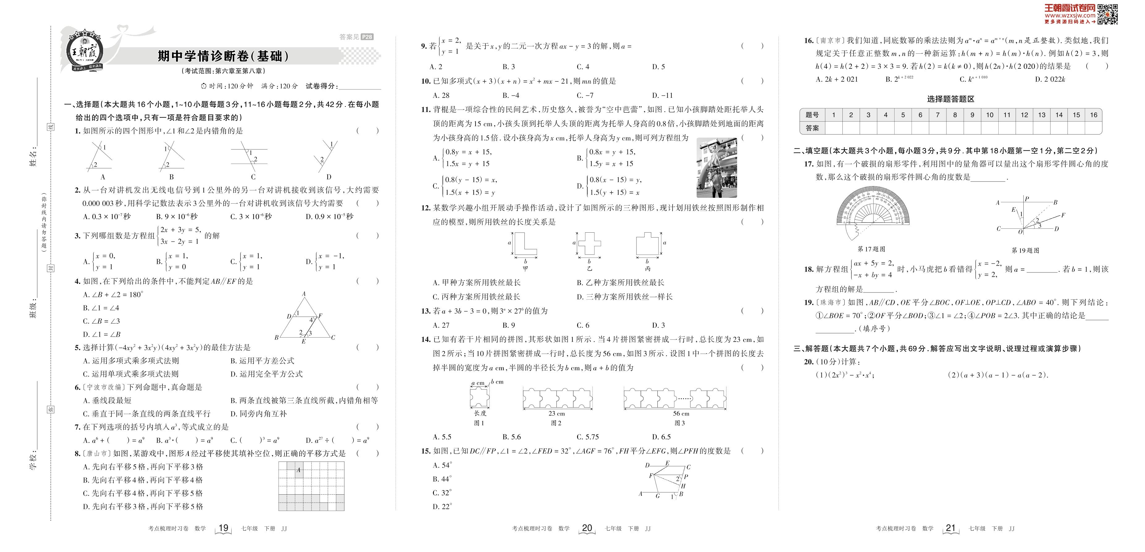 2023下册七年级数学冀教版 期中学情诊断卷(基础)