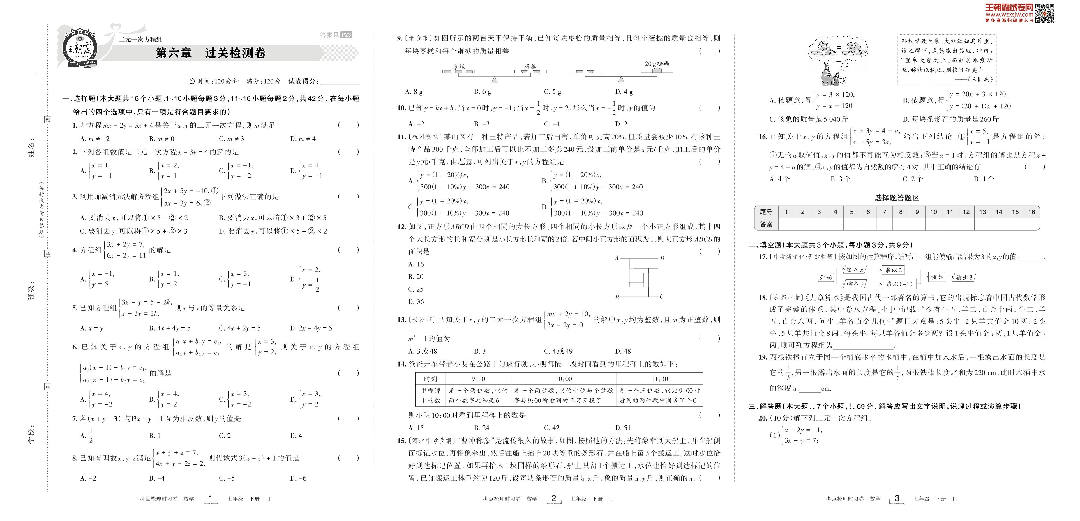 2023下册七年级数学冀教版 第六章 过关检测卷