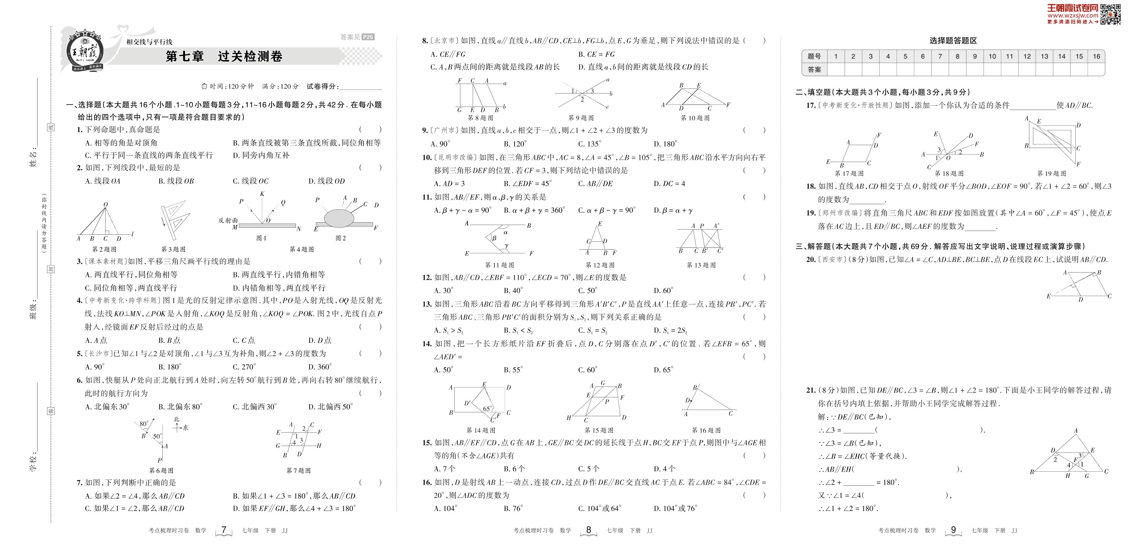 2023下册七年级数学冀教版 第七章 过关检测卷